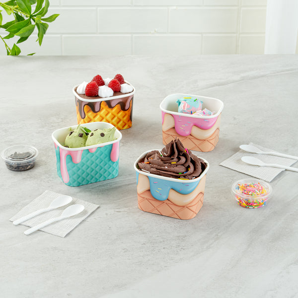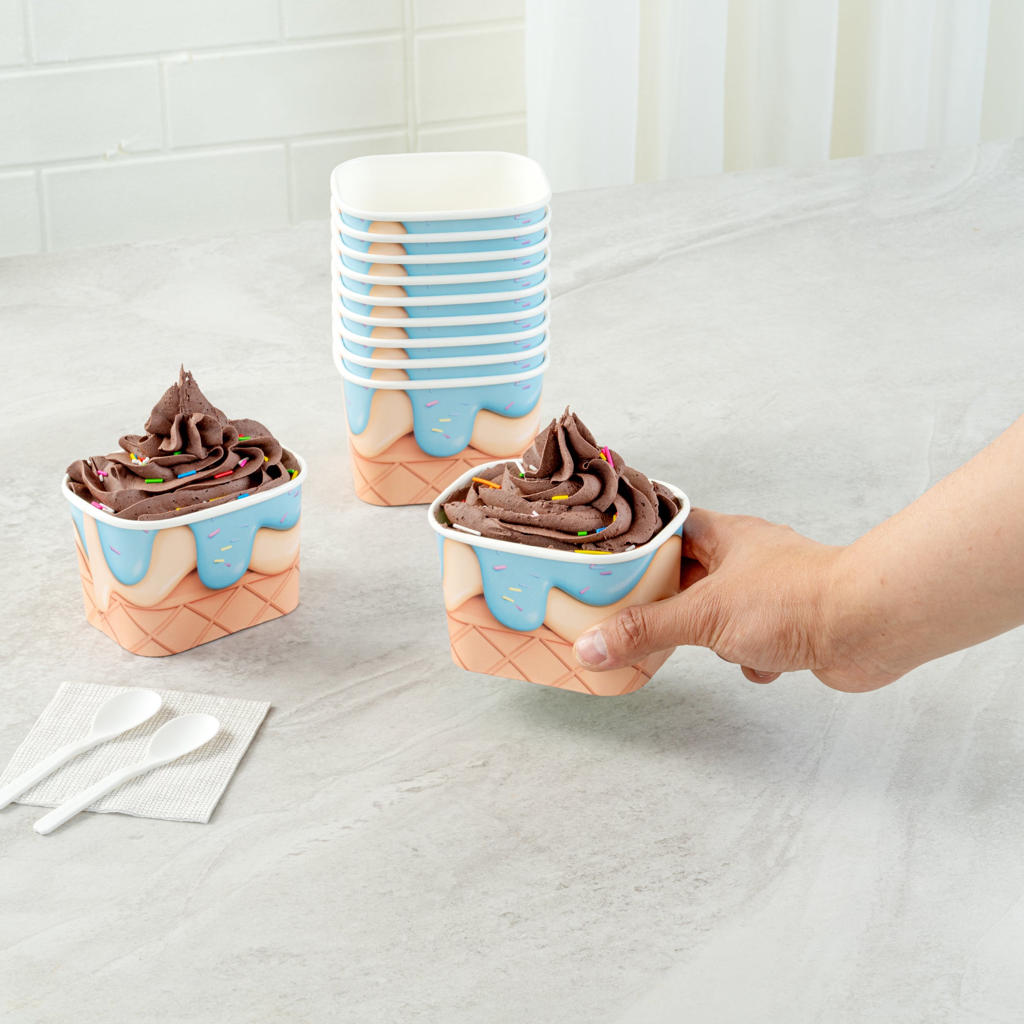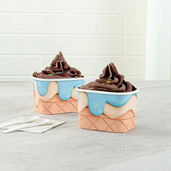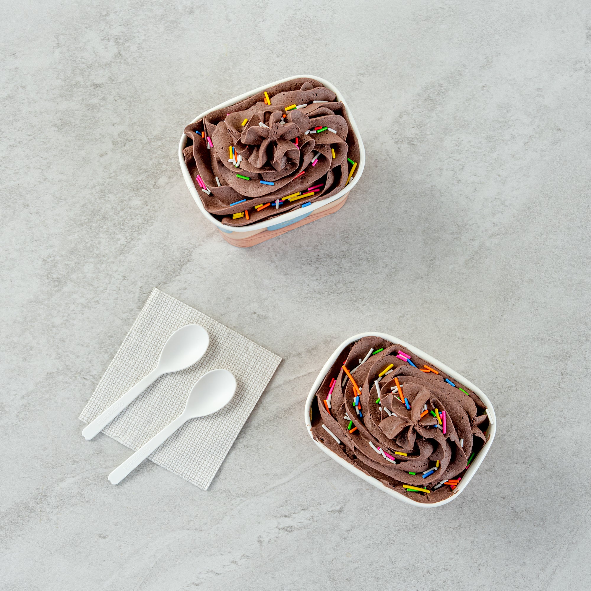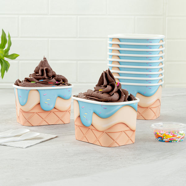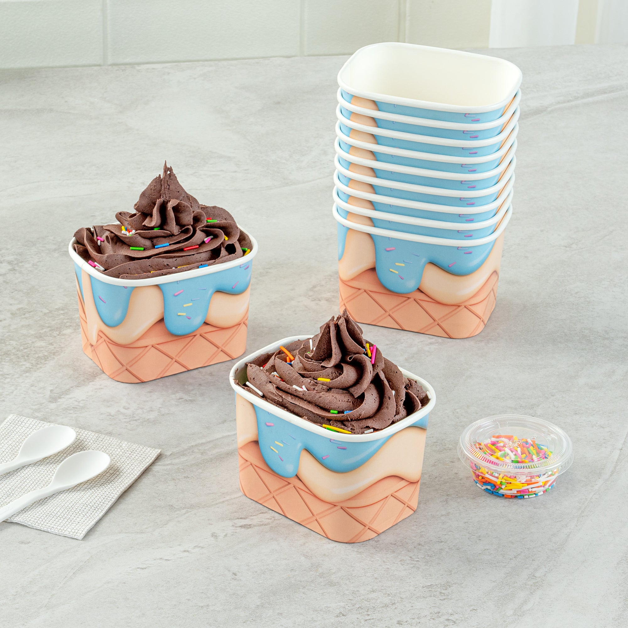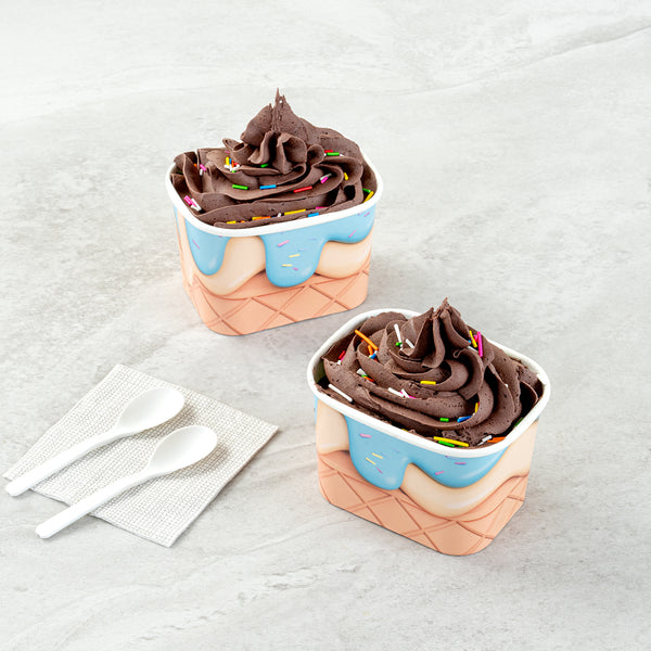 Elevate your dessert presentation with our Coppetta 12-ounce Square Frosty Delight Paper To Go Cups. These takeaway dessert cups feature a grease-resistant PE lining to keep oil from seeping through, ensuring a neat and professional food presentation. Designed for durability, these disposable cups are suitable for serving both hot and cold foods, making them versatile for any menu item. This recyclable convenience provides an eco-friendly container, allowing you to serve food while being mindful of the environment. The rolled rim on these round ice cream cups securely holds coordinating lids (SKU: RWA1736W-50), making them perfect for taking food on-the-go. Featuring a frosty delight exterior, these frozen yogurt paper cups give an upscale appearance that will impress your customers. These freezer-safe square ice cream cups allow you to refrigerate leftovers without compromising the quality of your food. Each of these to go cups has a capacity of 12 ounces and measures 4.21 inches in length by 3.23 inches in width by 2.68 inches in height. Sold in a 50 count box.