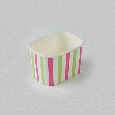 12 OZ SQUARE GREEN AND PINK STRIPE PAPER TO GO CUP