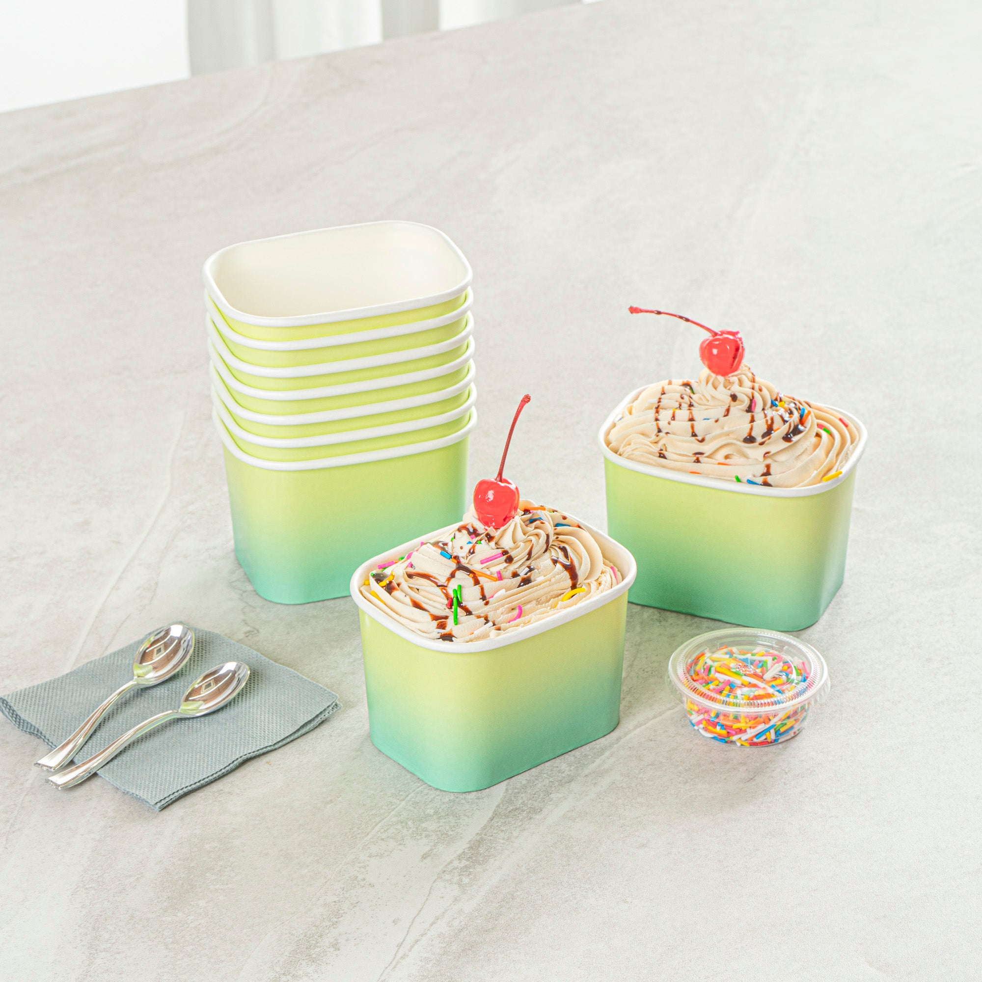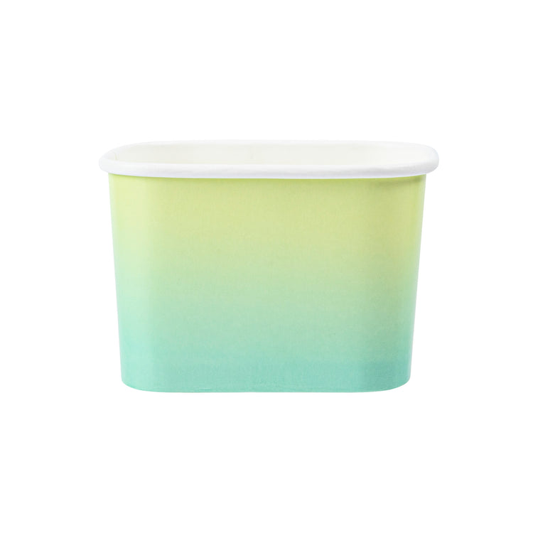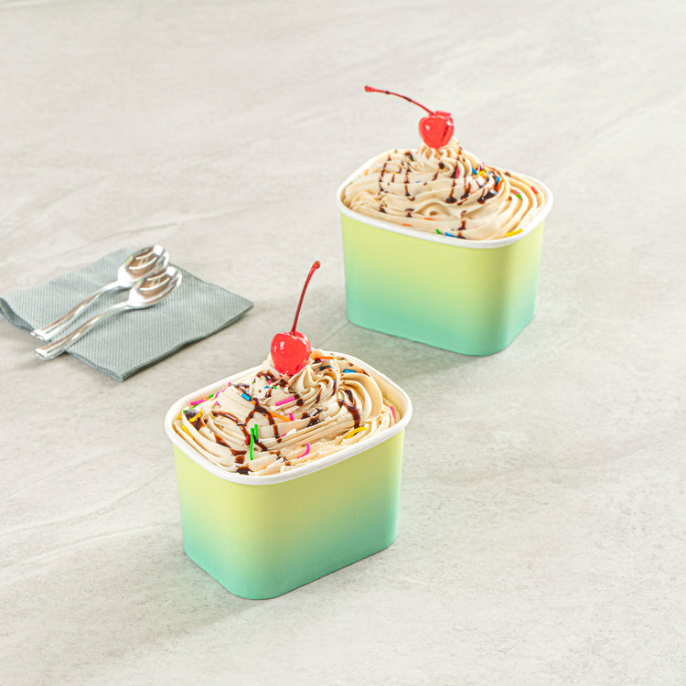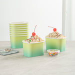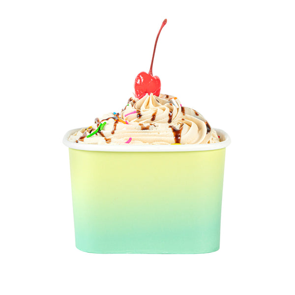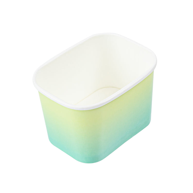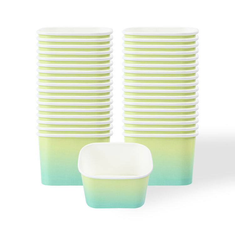 Enhance your beverage service with versatile and leak-proof solutions. The Coppetta Leak-Resistant Disposable Drink Cup combines a waterproof coating with durable paper construction, ensuring mess-free service and maintaining integrity for both hot and cold beverages. Its multi-purpose design accommodates a variety of drinks, from steaming coffee to creamy ice cream, making it an ideal coffee to go cup or ice cream serving cup for cafes and restaurants alike. Constructed from recyclable materials, this cup supports eco-friendly operations and disposal, appealing to environmentally conscious consumers. With a 12-ounce capacity and dimensions of 4.25 inches by 3.25 inches by 2.75 inches, it is perfectly sized for standard drinks, while the teal and green ombre pattern adds a vibrant touch to your presentation. Each order includes 200 Coppetta Leak-Resistant Disposable Drink Cups.