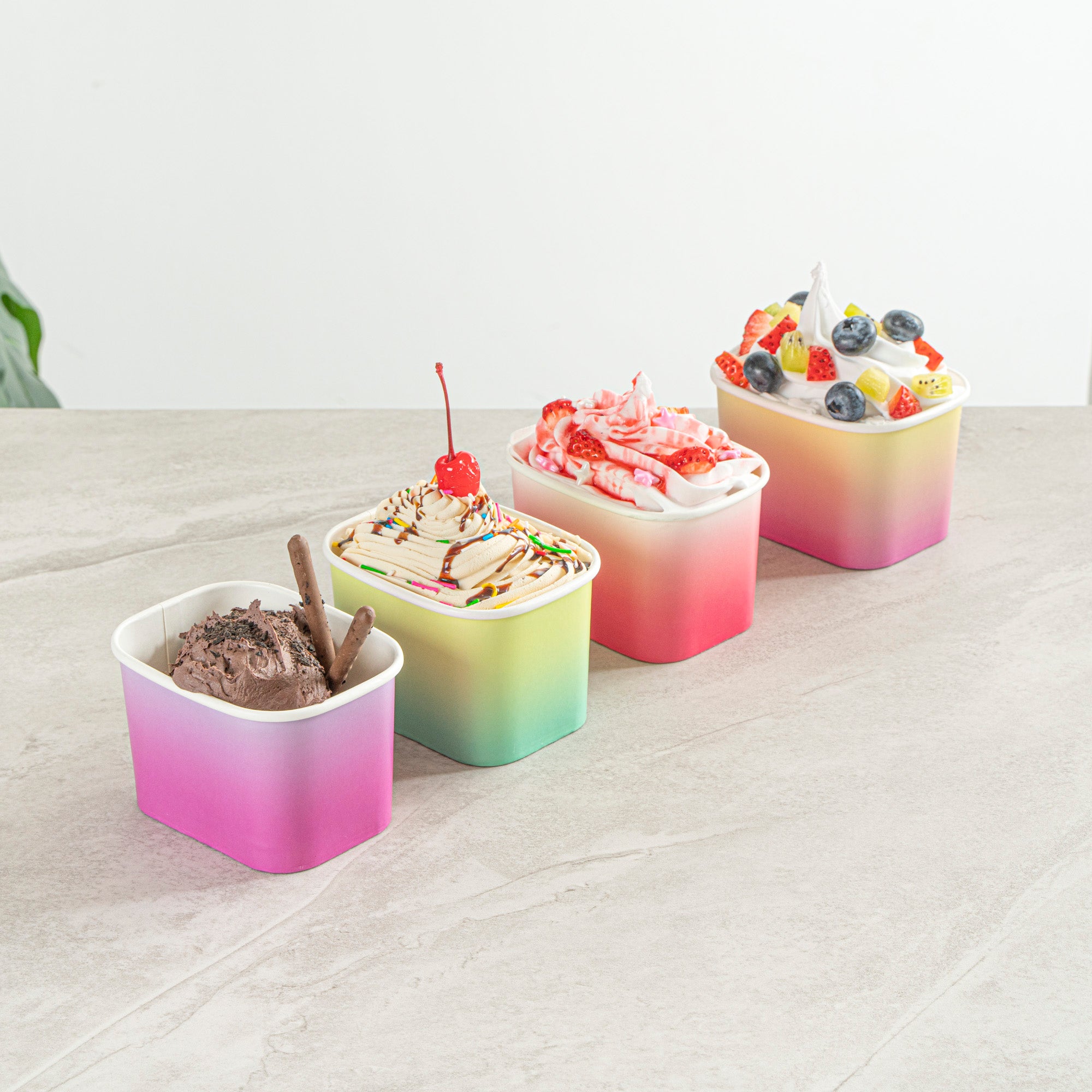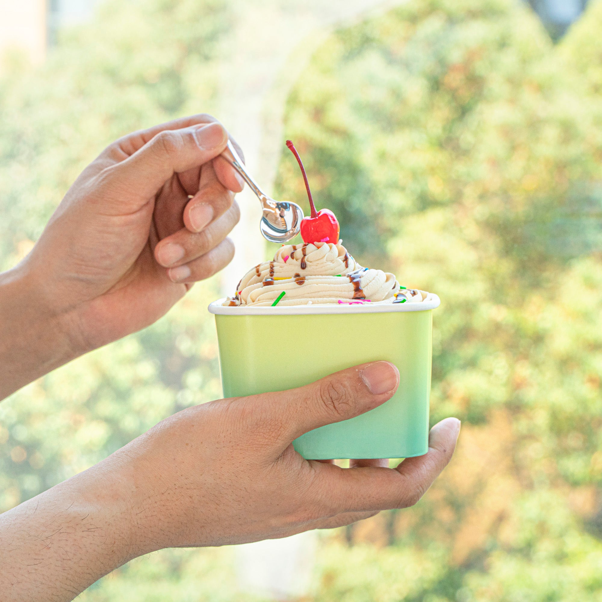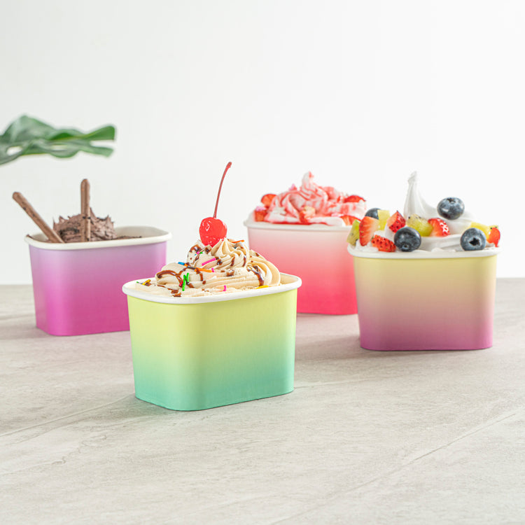 Enhance your beverage service with versatile and leak-proof solutions. The Coppetta Leak-Resistant Disposable Drink Cup combines a waterproof coating with durable paper construction, ensuring mess-free service and maintaining integrity for both hot and cold beverages. Its multi-purpose design accommodates a variety of drinks, from steaming coffee to creamy ice cream, making it an ideal coffee to go cup or ice cream serving cup for cafes and restaurants alike. Constructed from recyclable materials, this cup supports eco-friendly operations and disposal, appealing to environmentally conscious consumers. With a 12-ounce capacity and dimensions of 4.25 inches by 3.25 inches by 2.75 inches, it is perfectly sized for standard drinks, while the teal and green ombre pattern adds a vibrant touch to your presentation. Each order includes 200 Coppetta Leak-Resistant Disposable Drink Cups.