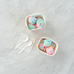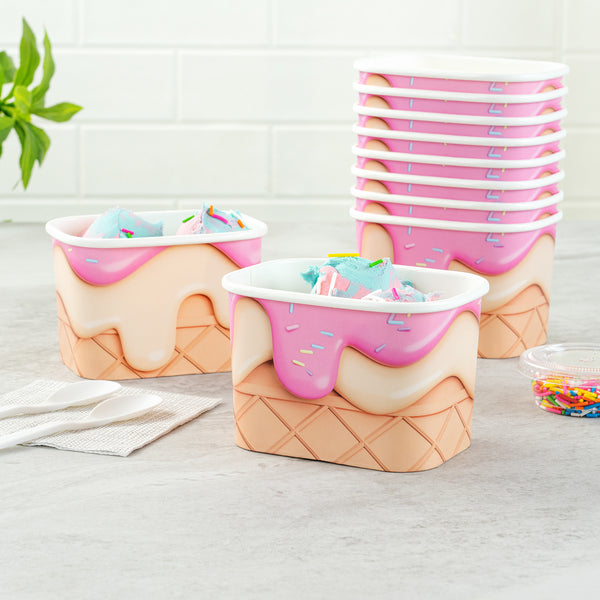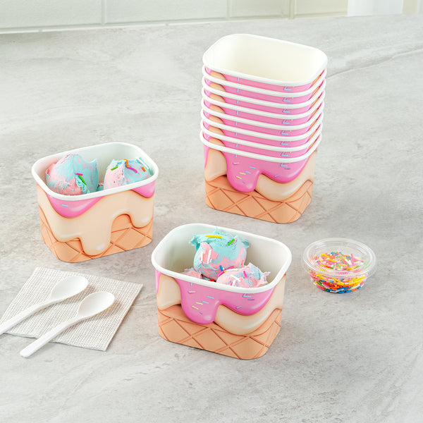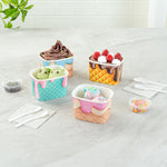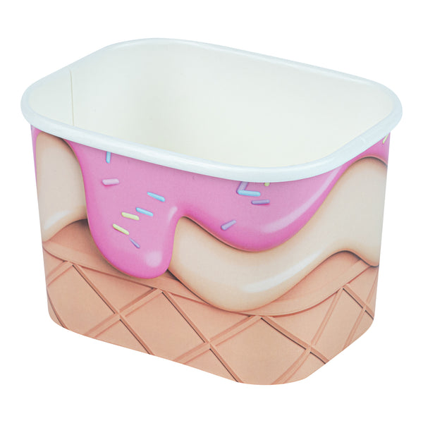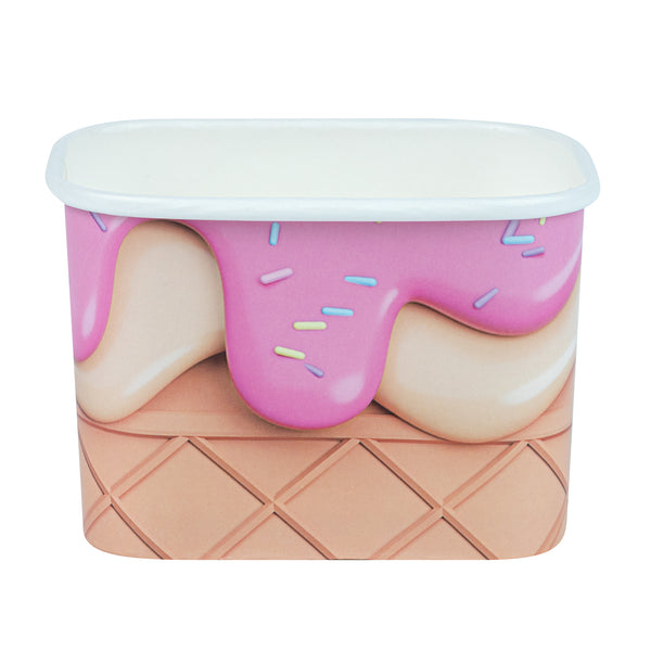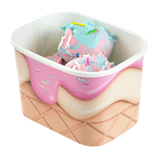 Elevate your food presentation with our Coppetta 12-ounce Square Vanilla Strawberry Swirl Paper To Go Cups. These square ice cream cups feature a grease-resistant PE lining that prevents soggy bottoms, ensuring a neat and attractive display. Constructed from durable paper, these takeaway dessert cups are perfect for serving both hot and cold foods. The recyclable convenience of these frozen yogurt paper cups makes them an eco-friendly choice for your foodservice needs. With a rolled rim, these to go cups securely hold coordinating lids (SKU: RWA1736W-50) for easy transport of your culinary creations. The vanilla strawberry swirl design gives these premium paper frozen dessert cups an upscale and enticing appearance. Freezer-safe, these disposable cups allow you to refrigerate leftovers with ease. Designed with a capacity of 12 ounces, these square ice cream cups measure 4.21 inches in length by 3.23 inches in width by 2.68 inches in height. Sold in a 50 count box.