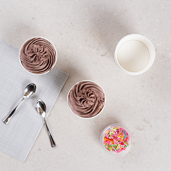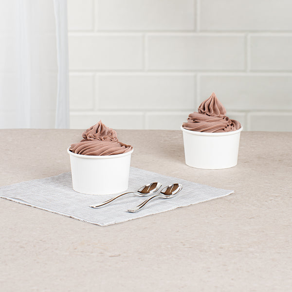 Great for serving hot or cold dishes! Crafted from thick paper, these dessert cups are durable and ideal for serving ice cream at a birthday party or warm chili at a cookoff.