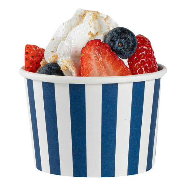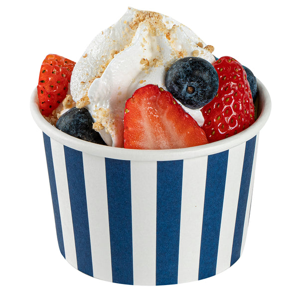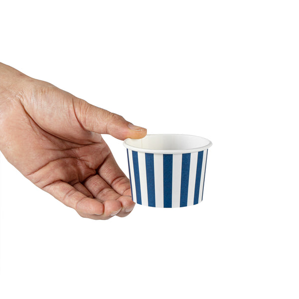 4 OZ ROUND BLUE AND WHITE STRIPE PAPER TO GO CUP