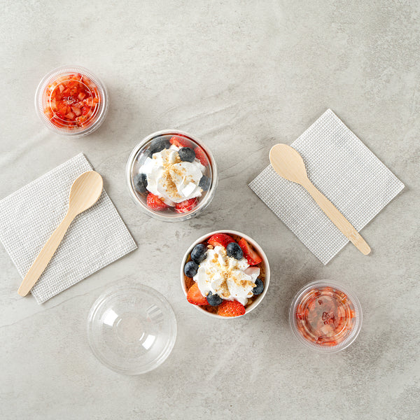 Pair these disposable paper cups with their compatible lids for a secure take out solution. They form a secure seal that ensures your treats won’t spill out to avoid sticky messes.