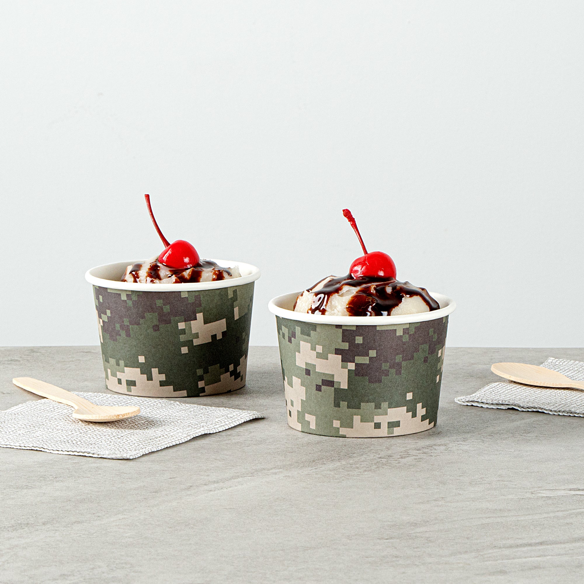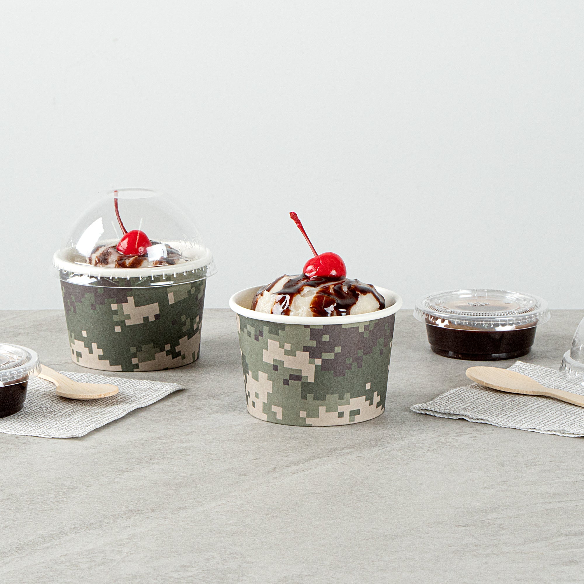 Great for serving hot or cold dishes! Crafted from thick paper, these dessert cups are durable and ideal for serving ice cream at a birthday party or warm chili at a cookoff.