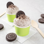 Great for serving hot or cold dishes! Crafted from thick paper, these dessert cups are durable and ideal for serving ice cream at a birthday party or warm chili at a cookoff.
