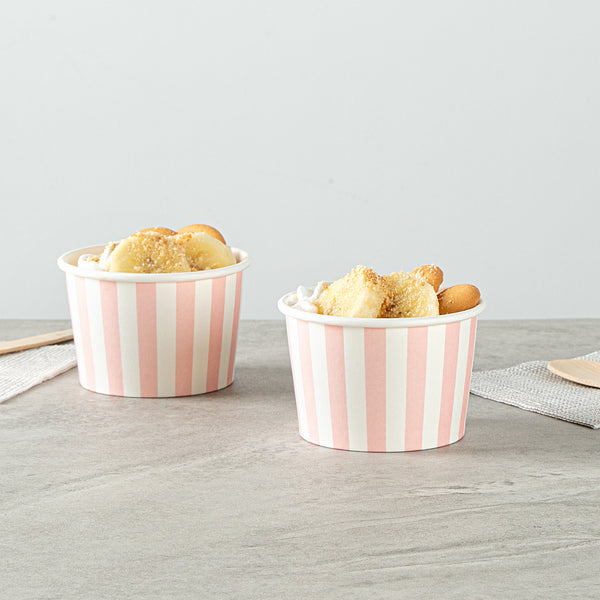 Great for serving hot or cold dishes! Crafted from thick paper, these dessert cups are durable and ideal for serving ice cream at a birthday party or warm chili at a cookoff.