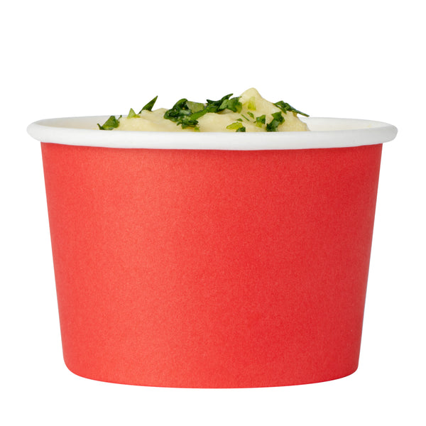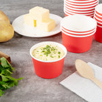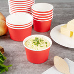 Great for serving hot or cold dishes! Crafted from thick paper, these dessert cups are durable and ideal for serving ice cream at a birthday party or warm chili at a cookoff.