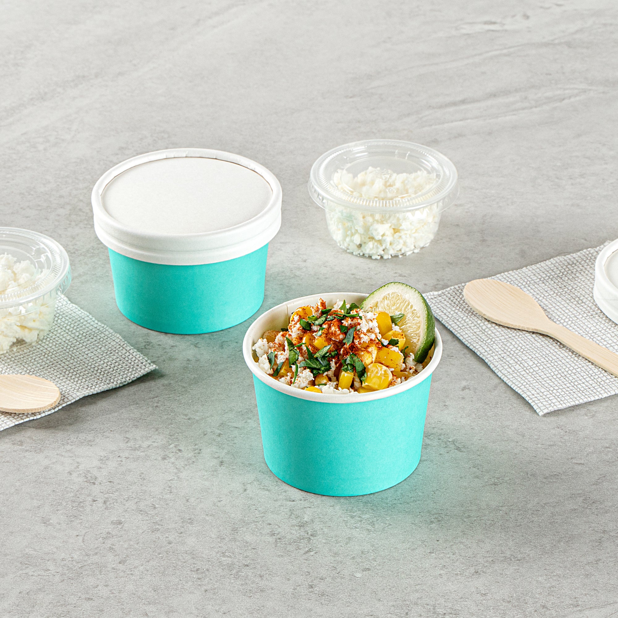 Pair these disposable paper cups with their compatible lids for a secure take out solution. They form a secure seal that ensures your treats won’t spill out to avoid sticky messes.