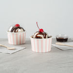 Great for serving hot or cold dishes! Crafted from thick paper, these dessert cups are durable and ideal for serving ice cream at a birthday party or warm chili at a cookoff.