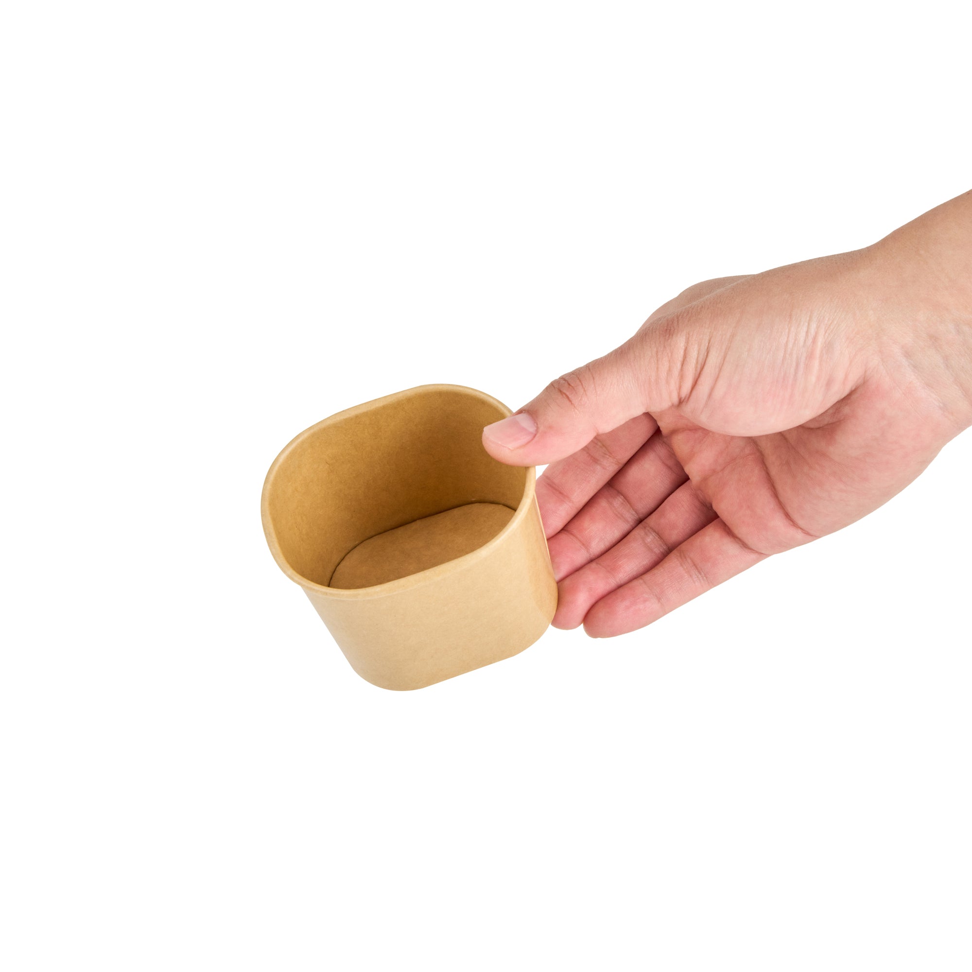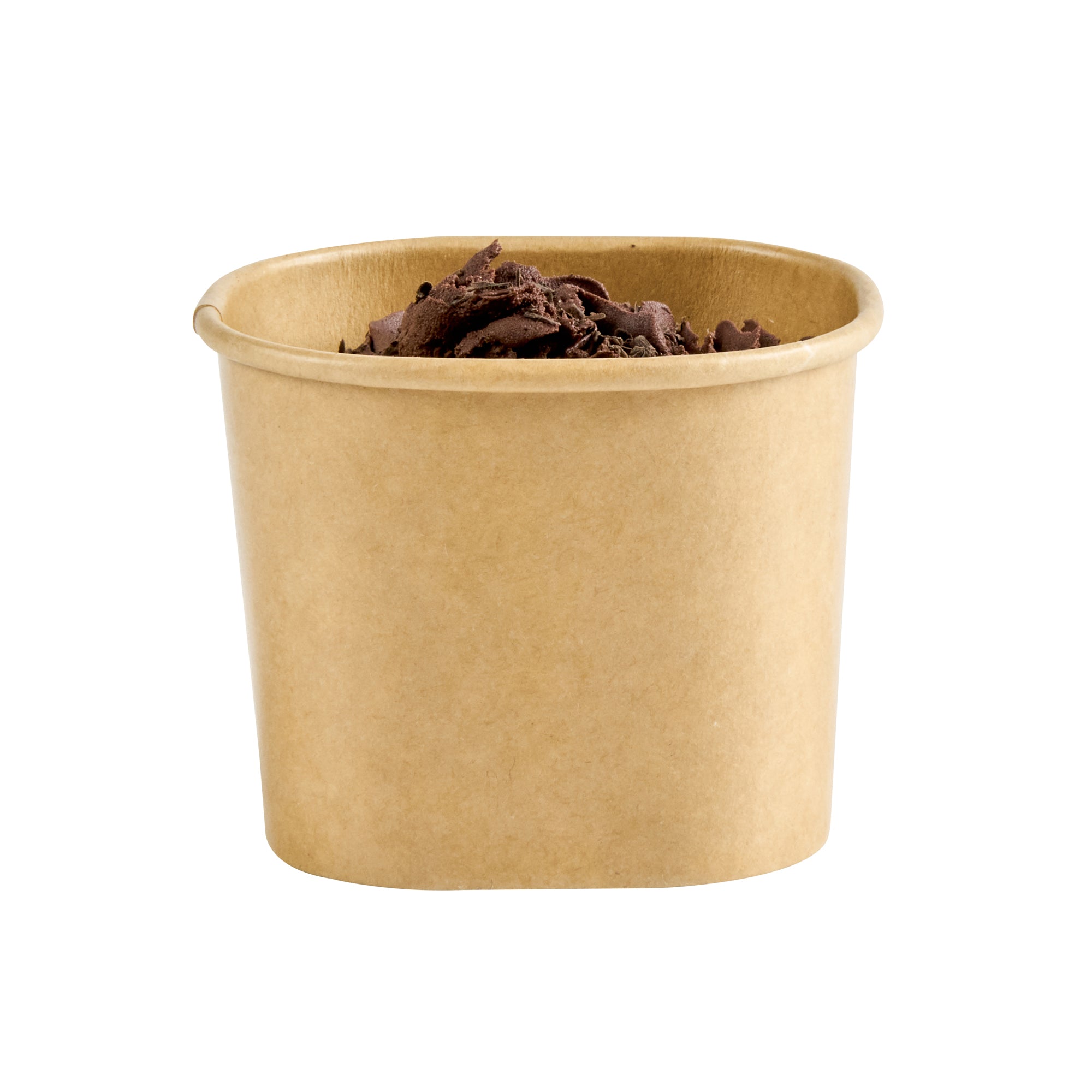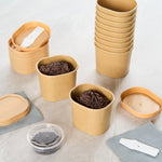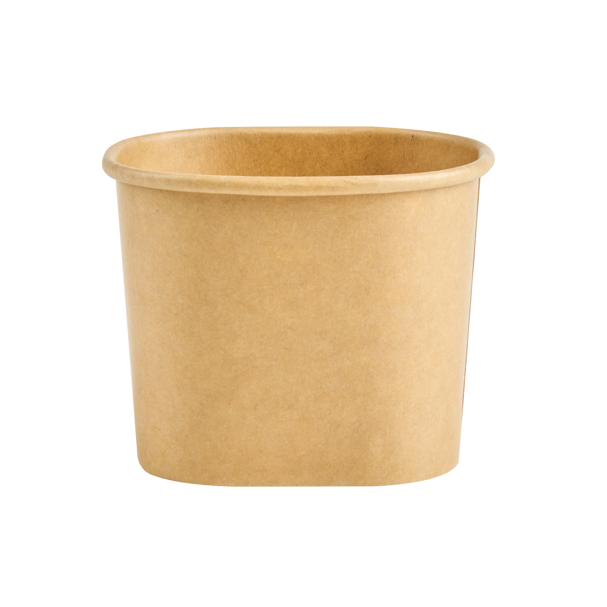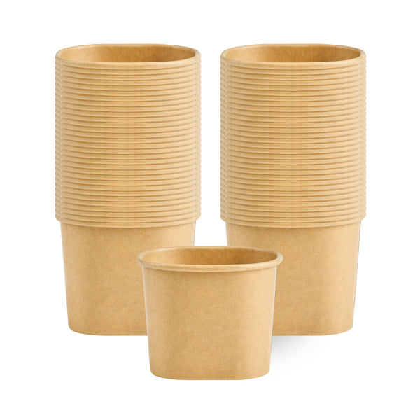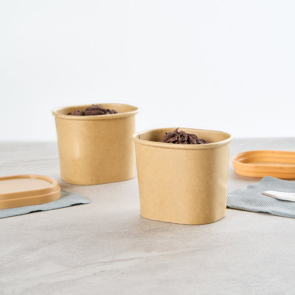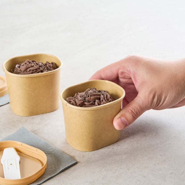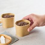 Elevate dessert moments with our Coppetta 5-ounce Square Kraft Paper To Go Cups. These square ice cream cups feature a grease-resistant PE lining to keep oil from seeping through for a neat food presentation. Made from durable paper, these takeaway dessert cups are ideal for serving both hot and cold foods. Designed with recyclability in mind, these kraft paper cups provide an eco-friendly option for your foodservice needs. A rolled rim ensures these to go cups securely hold coordinating lids (SKU: RWA1741BR) for convenient transport. Showcasing a natural kraft finish, these disposable cups add rustic charm to soups, frozen yogurts, or fresh fruit salads. Freezer-safe, these square ice cream cups allow for easy refrigeration of leftovers. With a capacity of 5.4 ounces, these kraft paper cups measure 3.03 inches in length by 2.48 inches in width by 2.36 inches in height. Sold in a 50 count box.