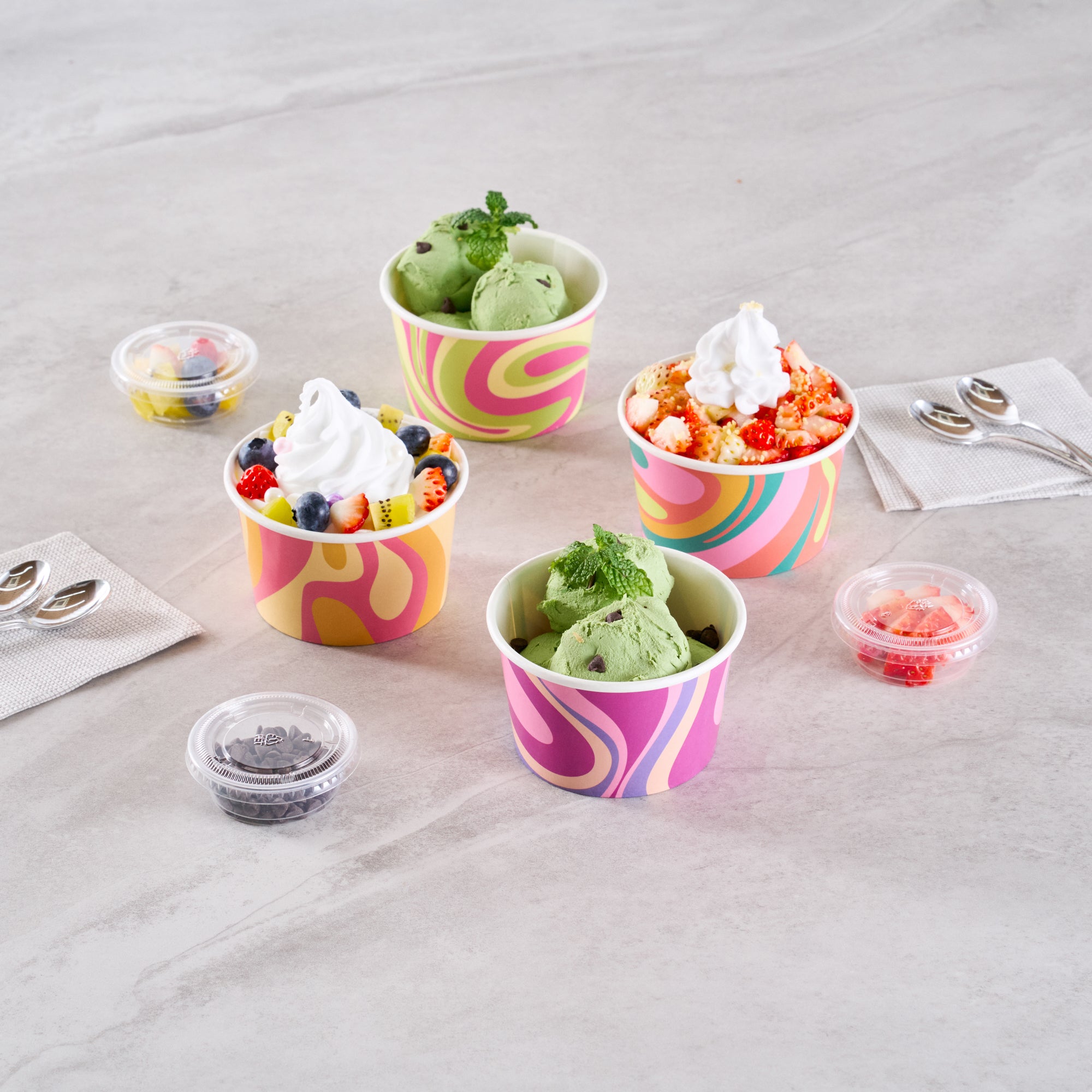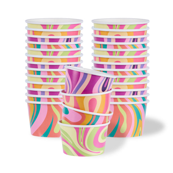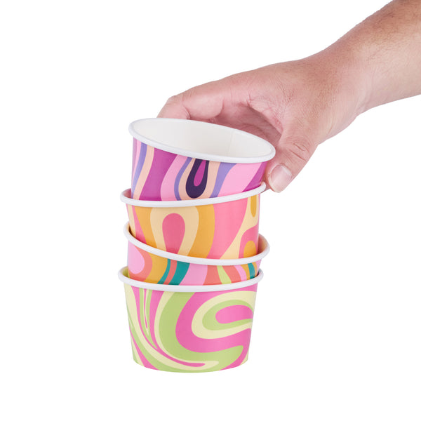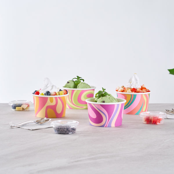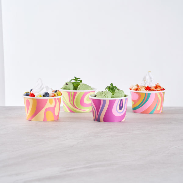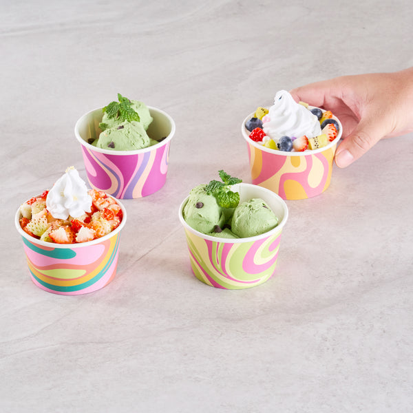 Enhance your menu offerings with versatile dessert serving solutions. The Coppetta Assorted Paper Ice Cream Cup features a double-coated design that prevents liquid leakage, ensuring a mess-free service for cold treats like ice cream and hot dishes such as soup. These paper ice cream cups are crafted from durable paper, providing a reliable and sturdy option for any foodservice establishment. With a grease-resistant coating, these disposable paper cups maintain their integrity even when serving greasy snacks, enhancing customer satisfaction. Each cup holds up to 8 ounces and measures 3.8 inches in diameter, making it an ideal choice for catering events, ice cream parlors, and cafés looking to offer stylish yet functional dessert serving cups. Simplify your operations with these recyclable, hot food-friendly cups that support sustainability initiatives. Each order includes 200 Coppetta Assorted Paper Ice Cream Cup.