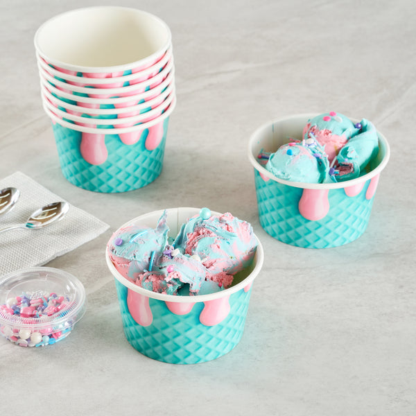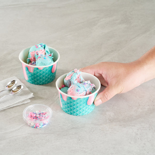 Enhance your beverage presentation with vibrant style. The Coppetta Leak-Resistant 8 oz Paper Cup captivates with its eye-catching bubblegum splash design, instantly elevating the appeal of your drinks. This 8 oz paper cup is expertly crafted from durable paper, featuring a double-coated design that prevents leaks and spills, ensuring a mess-free experience. Perfect for both hot and cold applications, this ice cream cup is freezer-safe and ideal for serving delightful ice cream sundaes or comforting hot soups, thanks to its hot food-friendly construction. Measuring 3.82 inches in length, it is compatible with standard 8 oz cup lids, providing a secure closure for safe transport. Embrace sustainable practices with its eco-friendly materials, making it a valuable addition to any cafe or catering event. Elevate your foodservice offerings with this versatile hot cup. Each order includes 50 Coppetta Leak-Resistant 8 oz Paper Cups.
