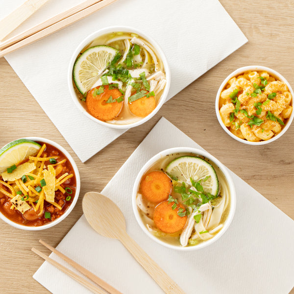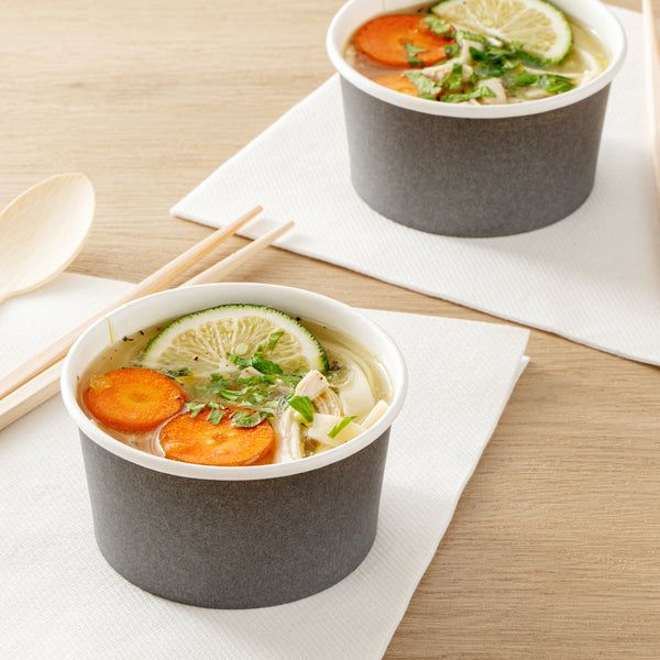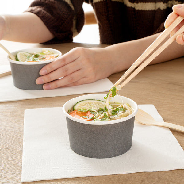 These disposable paper to go cups provide an ecologically-sustainable way to cleanup after eating. Enjoy your food with minimal impact on the environment.