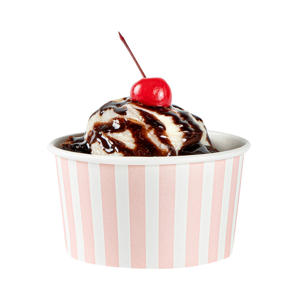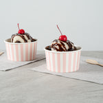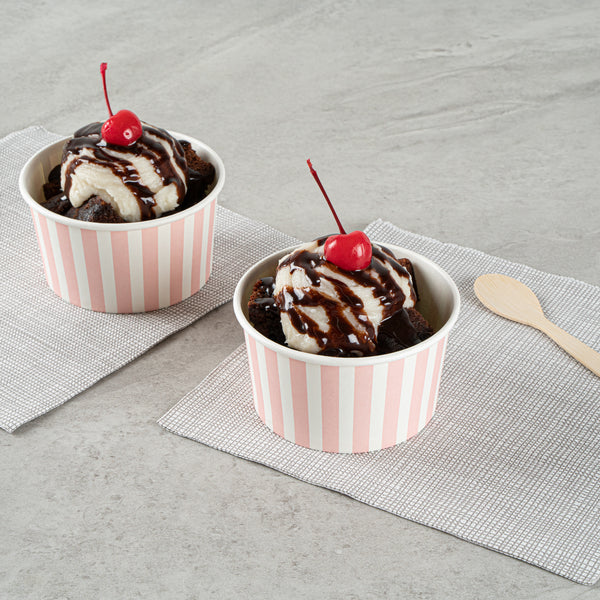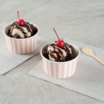 Great for serving hot or cold dishes! Crafted from thick paper, these dessert cups are durable and ideal for serving ice cream at a birthday party or warm chili at a cookoff.