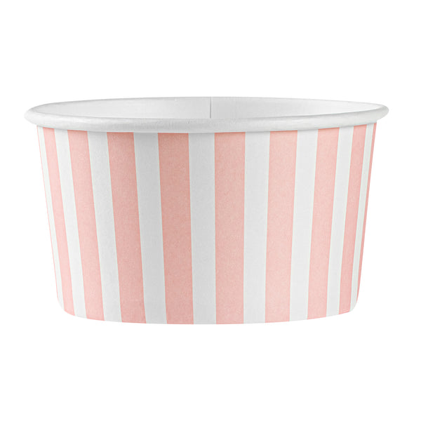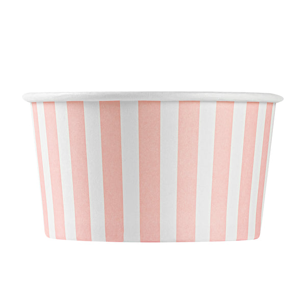 8 OZ ROUND PINK AND WHITE STRIPE PAPER TO GO CUP