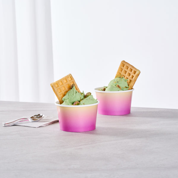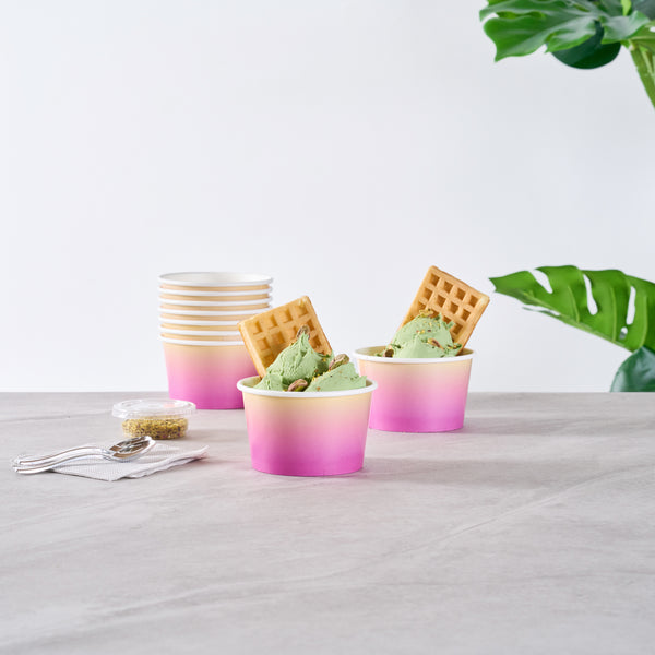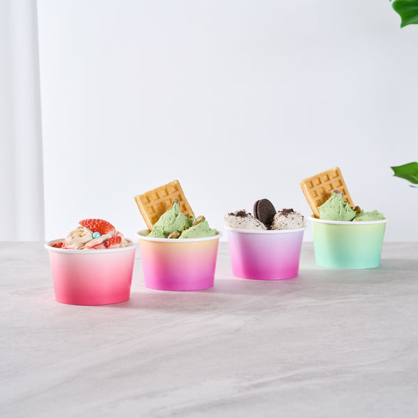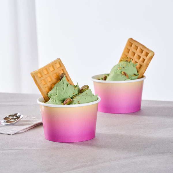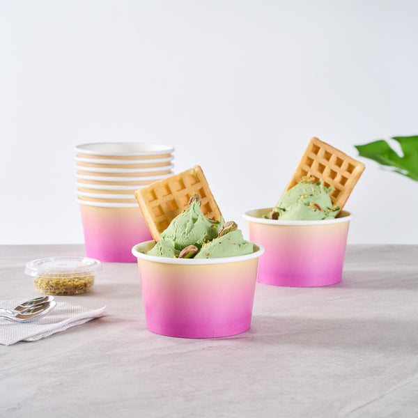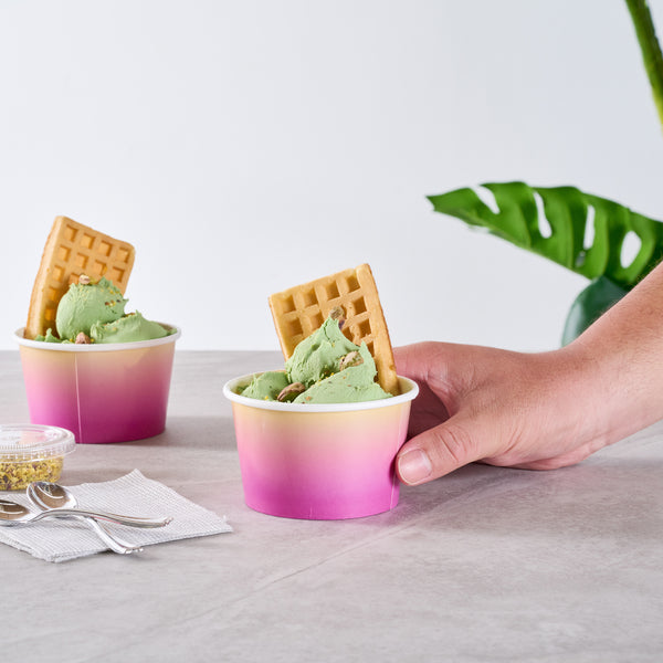 Keep desserts and snacks delightfully mess-free with these versatile cups. Coppetta Leak-Resistant Ice Cream Cups feature a waterproof coating that prevents leaks, making them ideal for serving ice cream and other treats without any mess. The hot food friendly design allows these cups to also serve as reliable soup cups, holding soups and stews with ease. With an 8-ounce capacity, these cups offer the perfect portion size for customer satisfaction. The grease-resistant surface supports oily snacks and cakes, ensuring a clean and appetizing presentation. Constructed from durable paper, these 8 oz paper cups are both recyclable and disposable, simplifying cleanup and supporting eco-friendly practices in foodservice operations. Measuring 3.75 inches in diameter and 2.25 inches in height, they are suitable for both hot and cold items, expanding menu options for takeout and delivery services. Each order includes 200 Coppetta Leak-Resistant Ice Cream Cups.