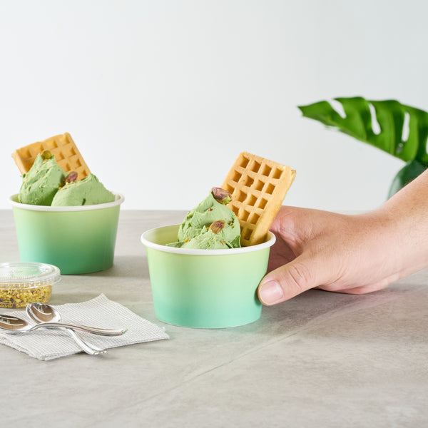 Ensure mess-free service with versatile, leak-resistant cups. Coppetta Leak-Resistant Paper To Go Cups feature a double-coated design that prevents liquid leakage, providing worry-free service for busy cafes and restaurants. These multi-purpose disposable paper cups are ideal for serving both cold and hot dishes, such as refreshing ice cream or comforting soup, making them indispensable for dynamic foodservice environments. With their freezer-safe capability, these cups maintain the quality of pre-prepped desserts, ensuring that ice cream serving cup options remain fresh and delicious. Made from high-quality paper with a waterproof coating, these cups are not only sturdy but also grease-resistant, making them a reliable choice for various culinary needs. Enhance your foodservice offerings with these recyclable cups, which measure 3.82 inches in width and support sustainability initiatives. Secure your supply today to optimize your foodservice operations. Each order includes 200 Coppetta Leak-Resistant Paper To Go Cups.