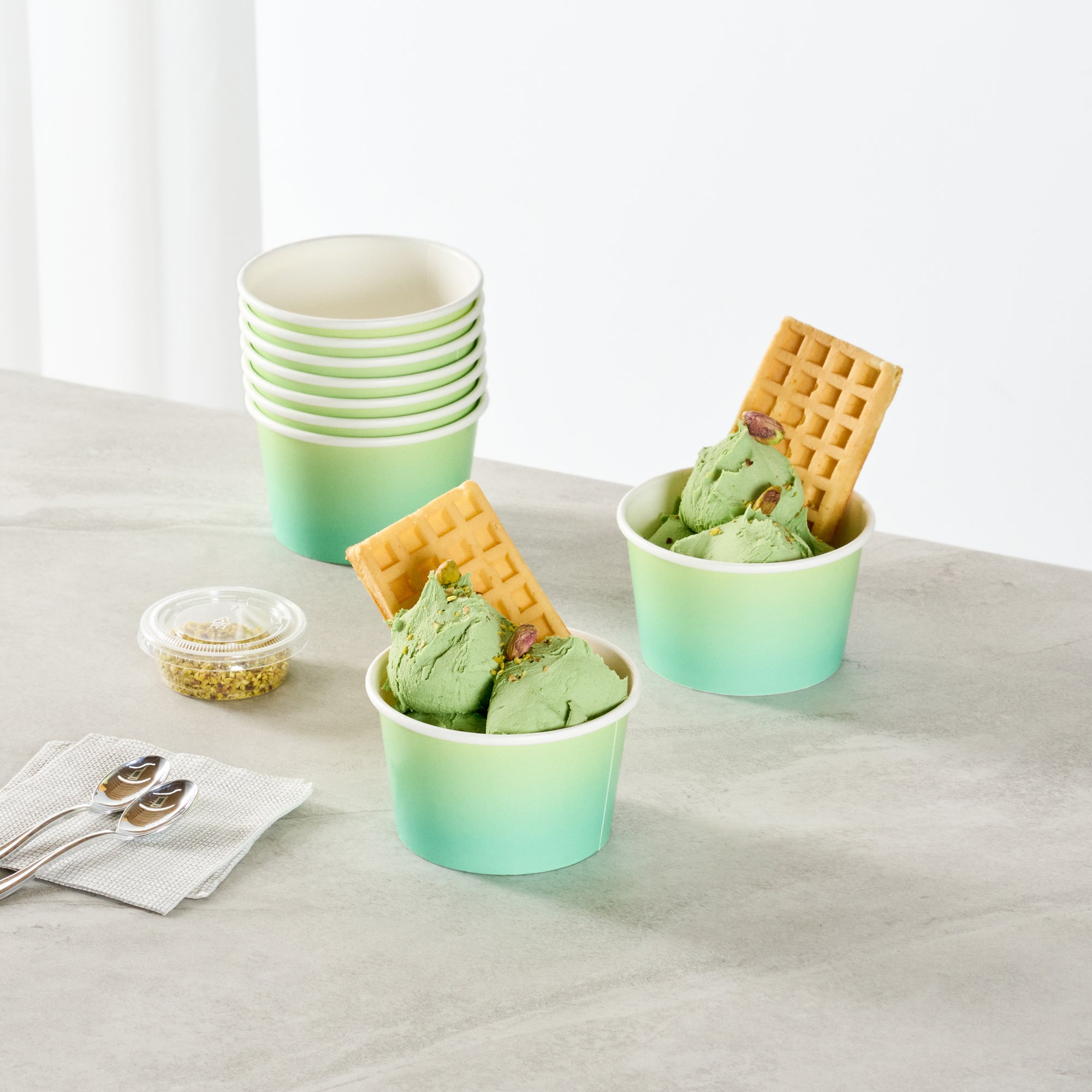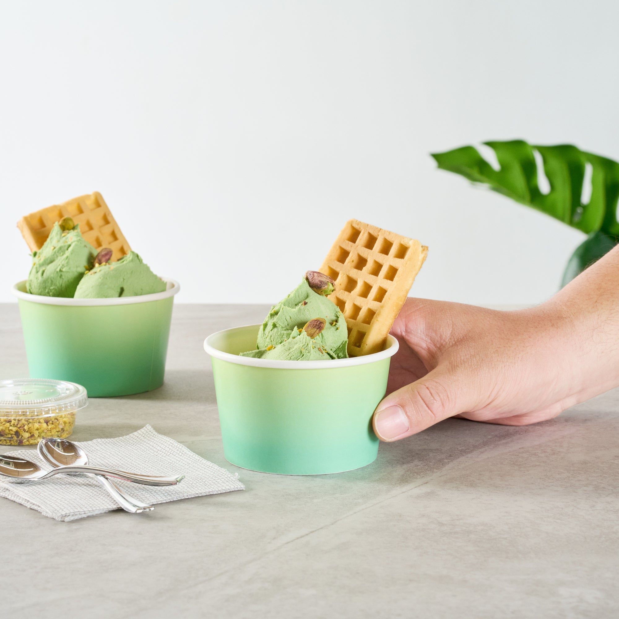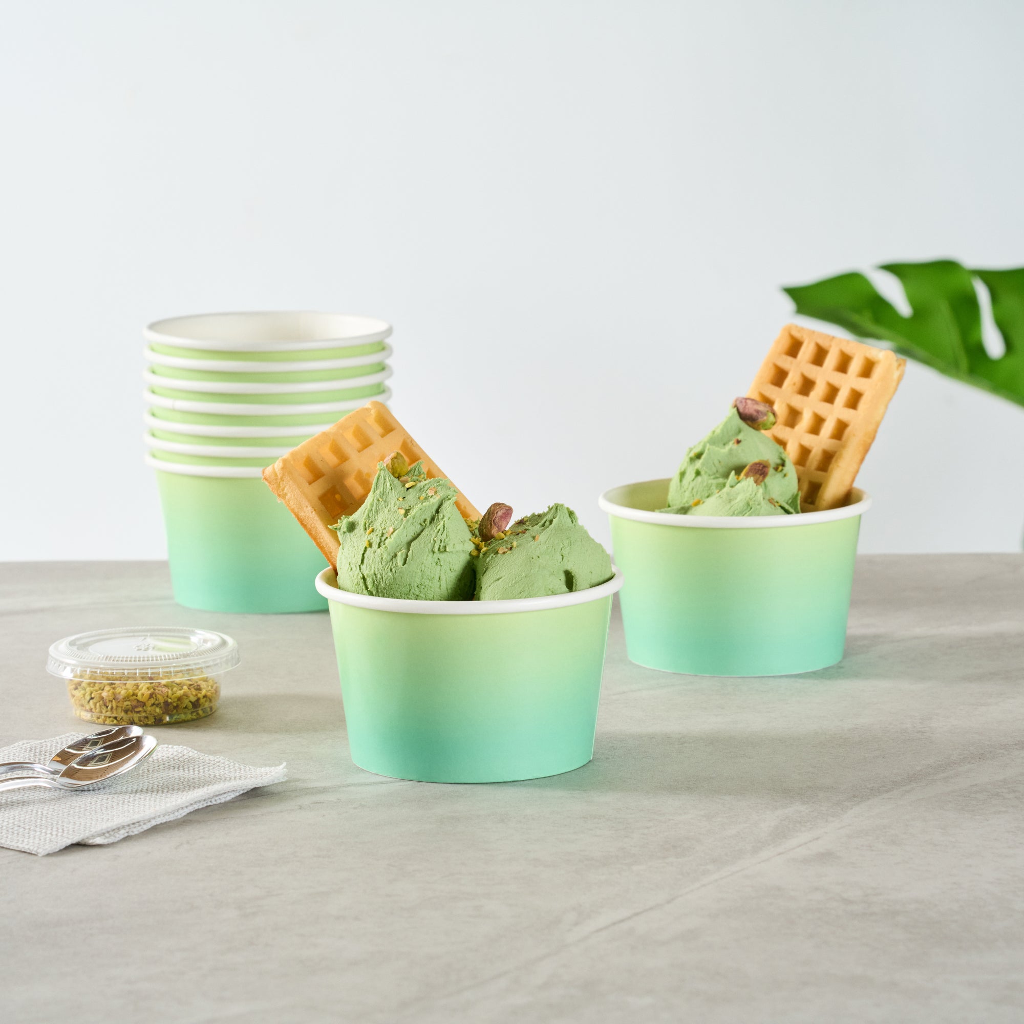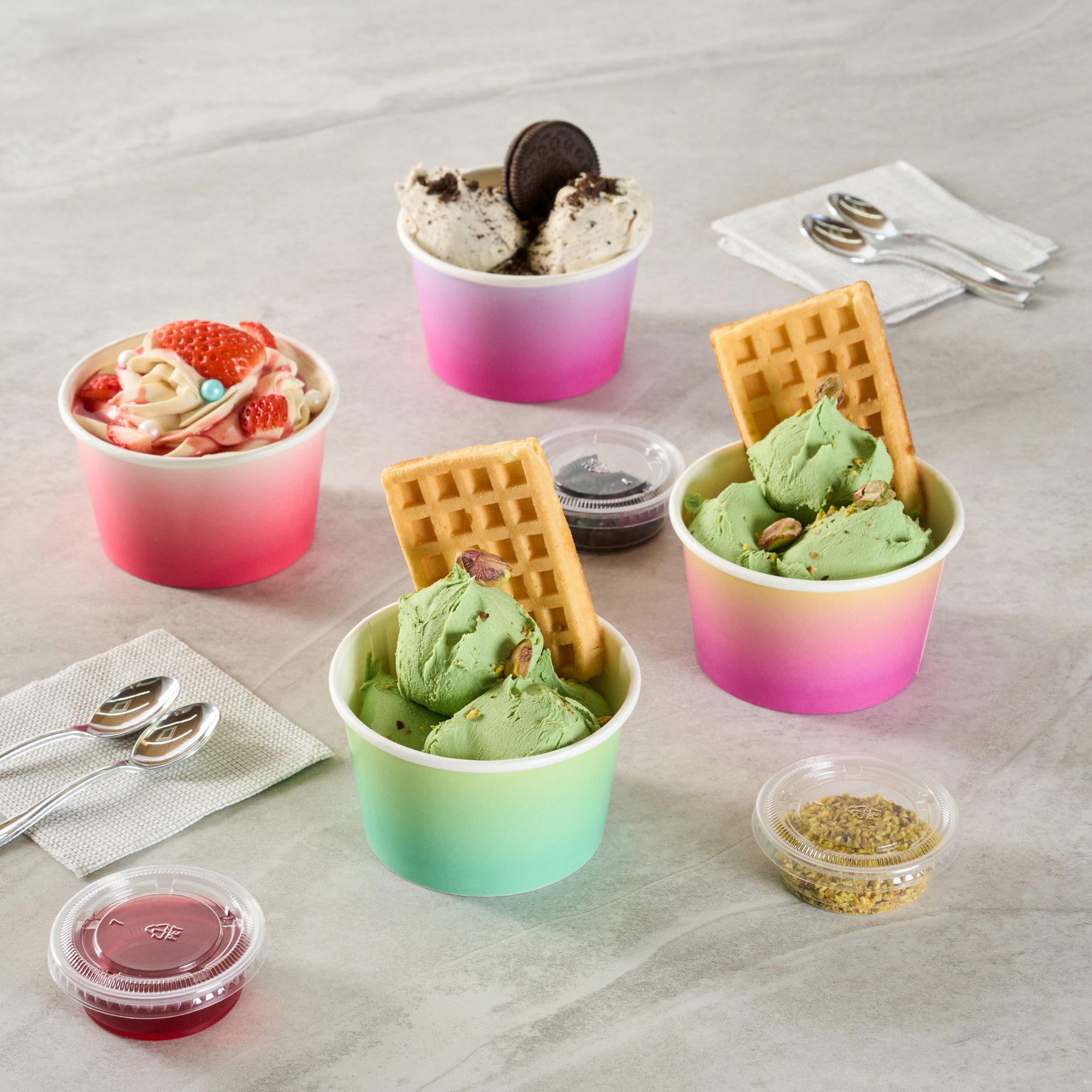 Ensure mess-free service with versatile, leak-resistant cups. Coppetta Leak-Resistant Paper To Go Cups feature a double-coated design that prevents liquid leakage, providing worry-free service for busy cafes and restaurants. These multi-purpose disposable paper cups are ideal for serving both cold and hot dishes, such as refreshing ice cream or comforting soup, making them indispensable for dynamic foodservice environments. With their freezer-safe capability, these cups maintain the quality of pre-prepped desserts, ensuring that ice cream serving cup options remain fresh and delicious. Made from high-quality paper with a waterproof coating, these cups are not only sturdy but also grease-resistant, making them a reliable choice for various culinary needs. Enhance your foodservice offerings with these recyclable cups, which measure 3.82 inches in width and support sustainability initiatives. Secure your supply today to optimize your foodservice operations. Each order includes 50 Coppetta Leak-Resistant Paper To Go Cups.