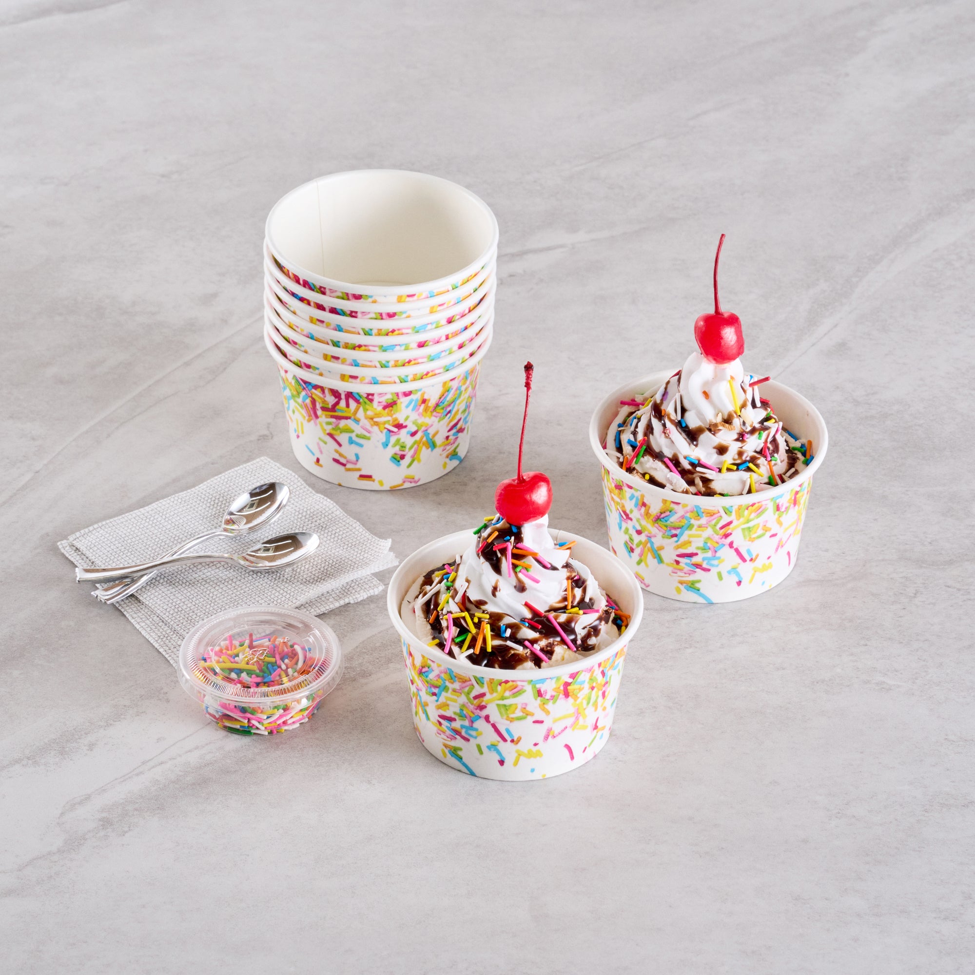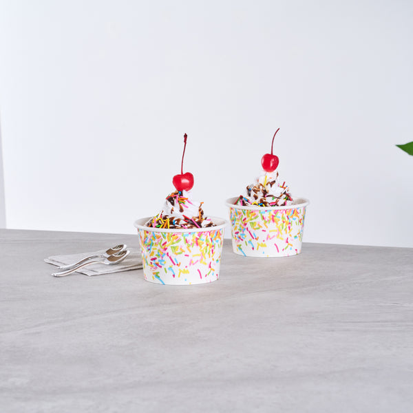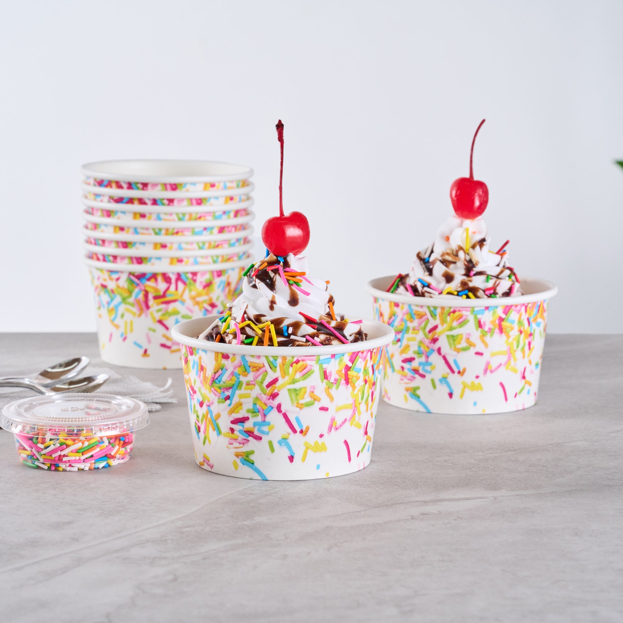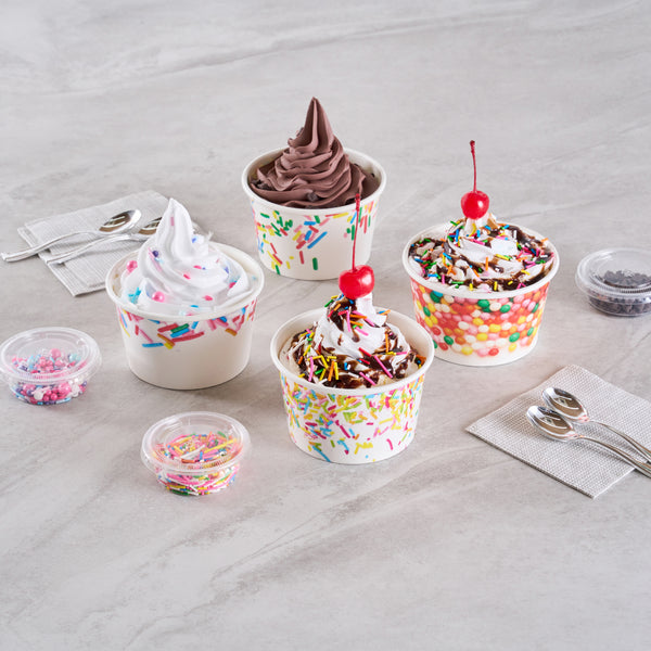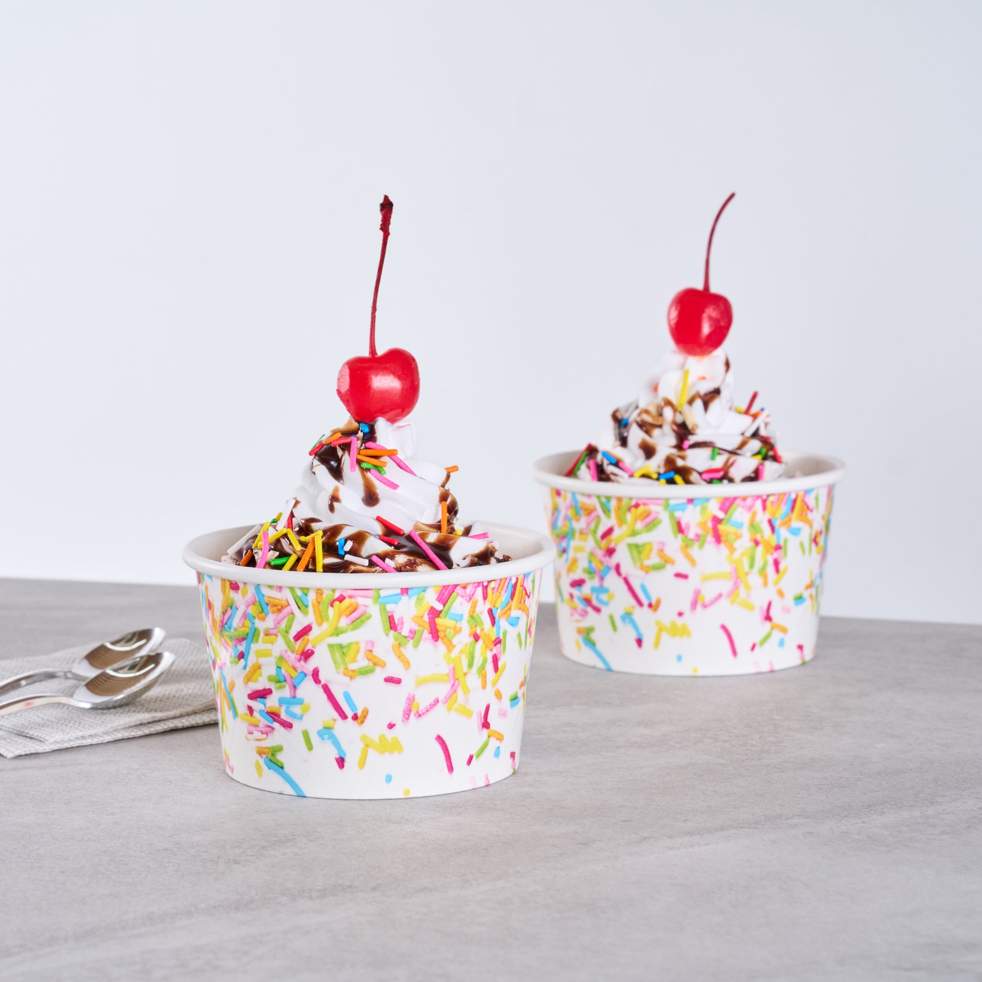 8 OZ ROUND WHITE PAPER TO GO CUP - WITH PARTY SPRINKLES