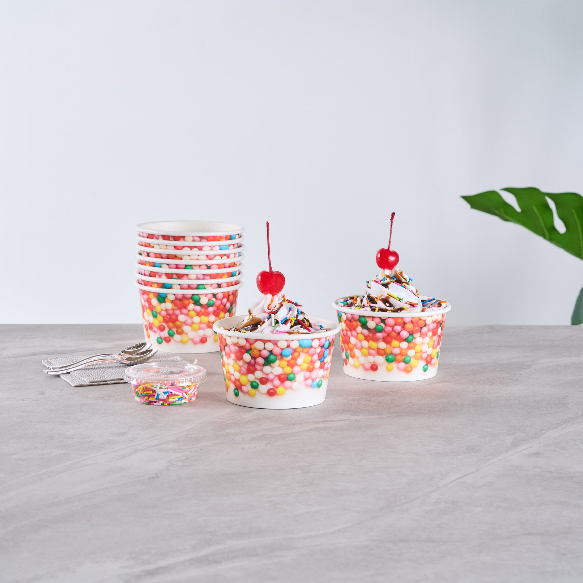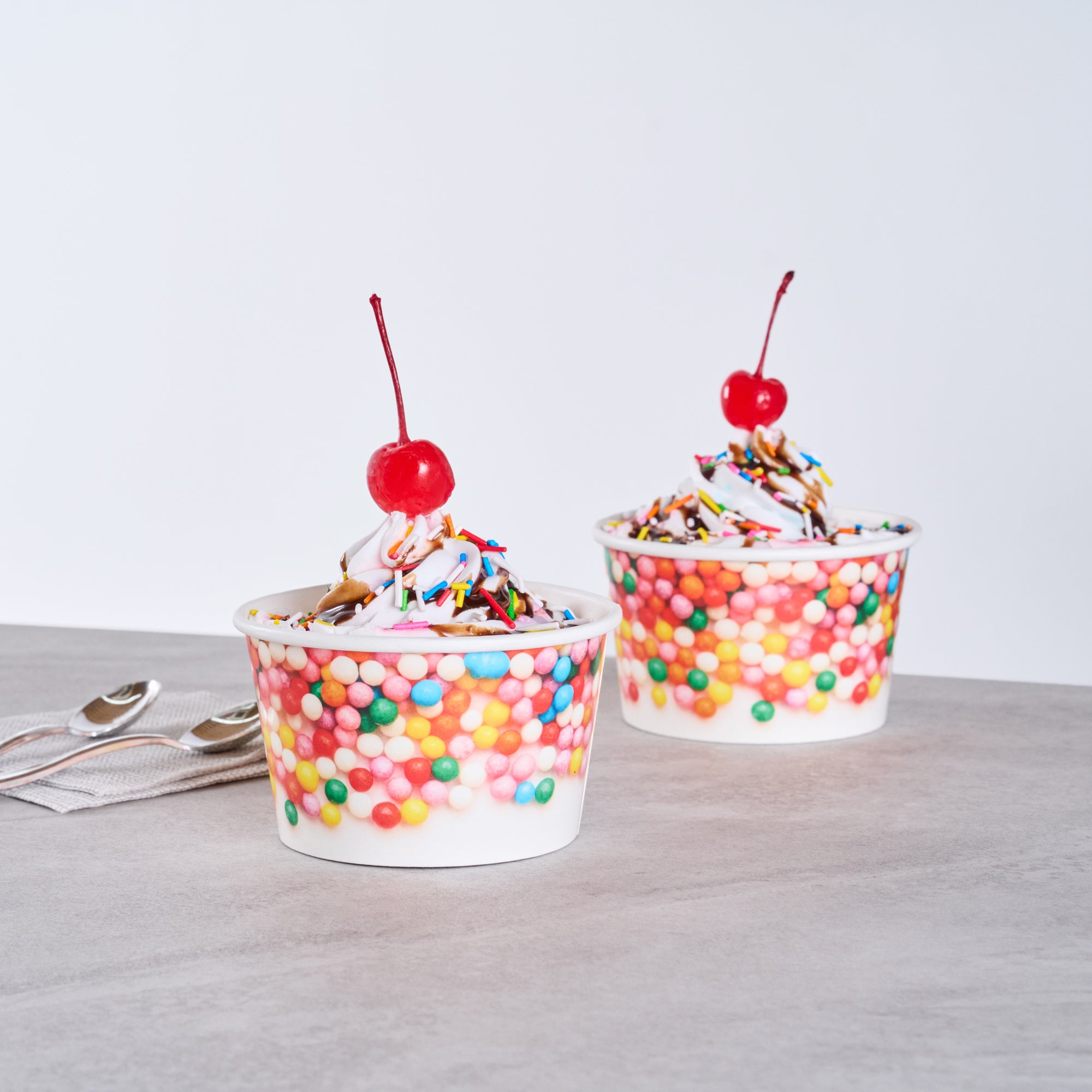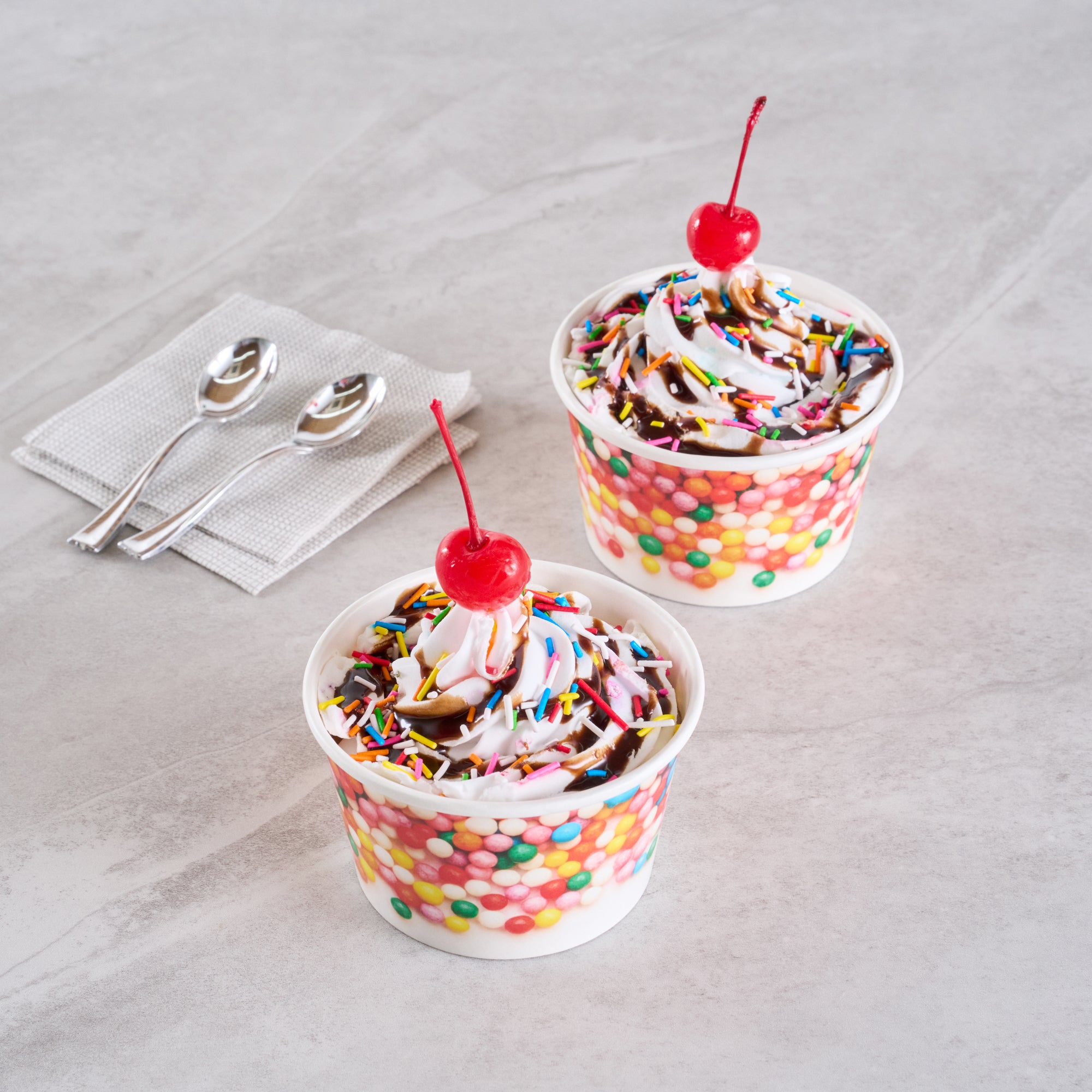 8 OZ ROUND WHITE PAPER TO GO CUP - WITH ROUND SPRINKLES