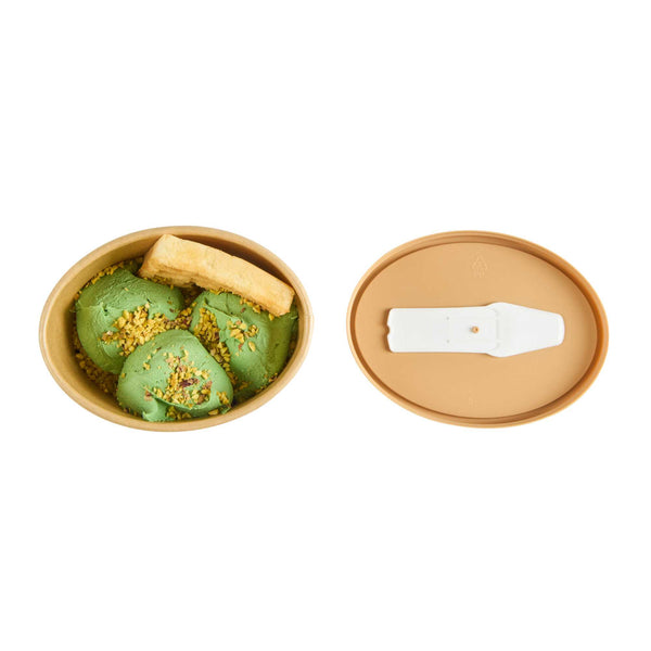 Effortlessly elevate your food packaging with our Coppetta Oval Brown Plastic Lids. These durable plastic lids ensure reliable use and are recyclable to reduce environmental impact. Coordinate these ice cream cup lids with our 6-ounce Coppetta cups to securely hold your ice creams and treats. Featuring an included plastic spoon, these to go cup lids make it easy to enjoy your treats on the go. Designed for versatility, these ice cream cup lids allow for easily enjoying hot or cold treats. With a natural-looking brown finish, these disposable lids add a stylish touch to your restaurant’s take out packaging. Measuring 3.86 inches in length by 2.95 inches in width by 0.43 inches in height, these brown plastic lids fit perfectly on your to go cups. Sold in a 50 count box.