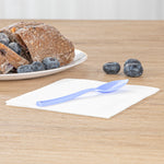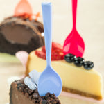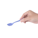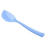 Bring a playful pop of color to your freshly scooped ice cream with our Coppetta Periwinkle Plastic Petal Spoons. Made from premium plastic, these frozen yogurt spoons have strong and sturdy handles that are built to resist breaking under the weight of heavy bites. Featuring a unique shovel-like shape, these small dessert spoons are excellent tools for enjoying giant ice cream sundaes and big bowls of gelato. The sleek pointed tip of these disposable spoons effortlessly slides into tightly packed scoops of ice cream and towering mounds of sorbet. With a unique angled shape, these plastic spoons ensure that your customers can easily scoop up every last delicious bit. For a swift after-service cleanup, these petal spoons are disposable. Each cake spoon measures 4.5 inches in length by 1 inch in width, making them ideal for serving alongside all types of frozen treats and delectable desserts. Shipped in a 100 count box.