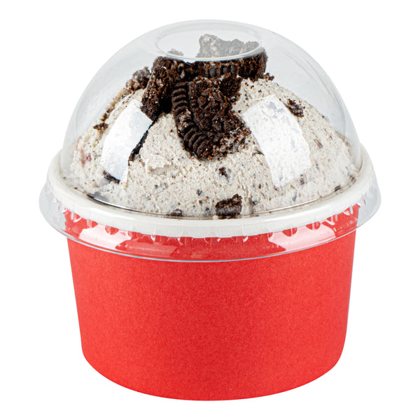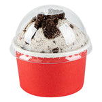 Great for serving hot or cold dishes! Crafted from thick paper, these dessert cups are durable and ideal for serving ice cream at a birthday party or warm chili at a cookoff.