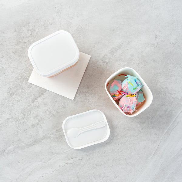 Enhance takeout convenience with an ice cream lid with spoon. Coppetta Integrated Spoon Ice Cream Lid features a durable plastic construction that ensures reliable use and is recyclable, reducing environmental impact while providing a secure fit for 7 and 12 ounce cups. Its integrated spoon simplifies on-the-go treat enjoyment, allowing customers to enjoy their frozen desserts without needing separate utensils. This disposable lid with spoon is cold food friendly, making it ideal for serving ice cream, frozen yogurt, and even chilled salads. Measuring 3.25 inches in both length and width, this white lid provides a clean, professional appearance that enhances product presentation in ice cream parlors and frozen yogurt shops. Caterers can trust this plastic lid for frozen desserts to maintain product integrity, offering a hygienic and convenient solution for individual servings. Each order includes 200 Coppetta Integrated Spoon Ice Cream Lids.
