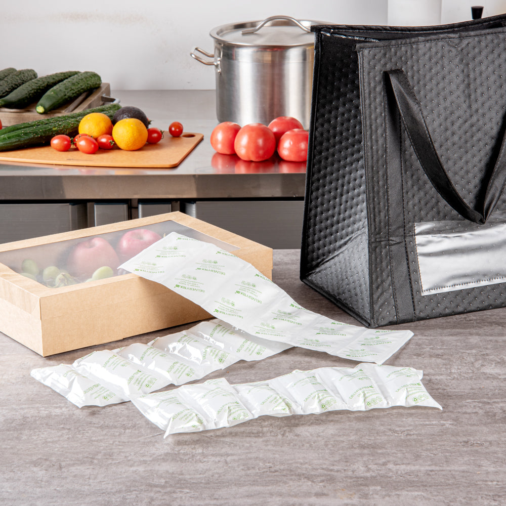 Get a 5-star rating for delivering your frozen items perfectly using our Delivery Tek Plastic Shipping Ice Packs. These sheets of ice packs are made of plastic for high durability and reusability. Use these cool pack cells individually or as a sheet, depending on your purpose. Soak these ice packs for cooler in water and air dry them before storing in the freezer. These freezer pack sheets have non-woven fabric on one side that provides a comfortable touch and fast swelling of the packs. For a smooth delivery process, these dry ice pack sheets are leakproof and do not wet your food. Manufactured as thin sheets, these sheets of ice packs are easy to store in your kitchen or home. Each of these reusable ice pack sheets comes with 6 ice pack cells and measures 15.25 inches in length by 5.75 inches in width. Shipped in a 10 count box.