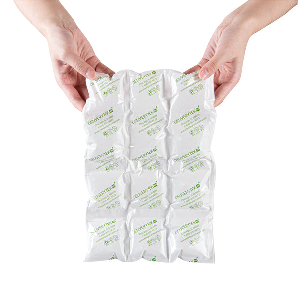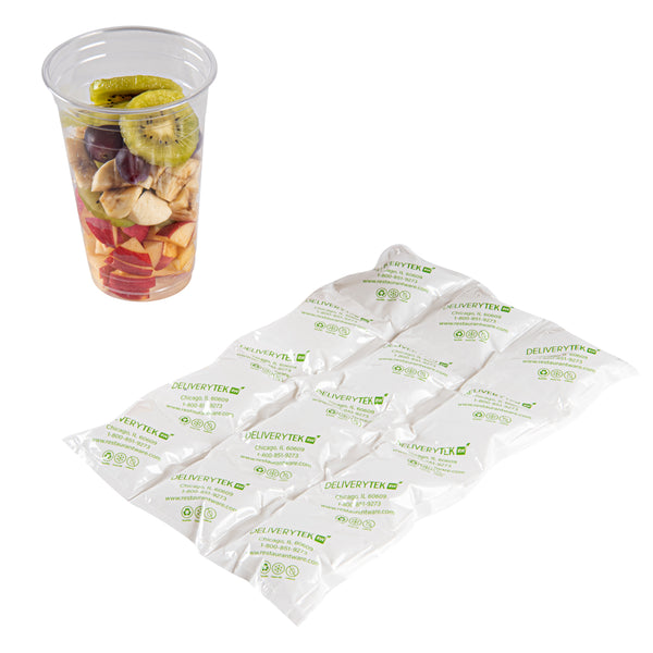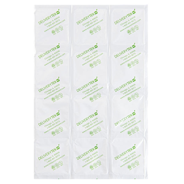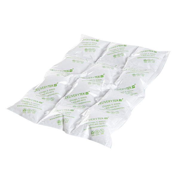 Don't let your ice cream melt while delivering it using our Delivery Tek Plastic Shipping Ice Packs. These sheets of cold packs are made of high-quality plastic and do not tear easily. Constructed to suit all your needs, use these cool packs as individual cells or as a sheet to store your foods. Conveniently immerse these reusable ice pack sheets in water to swell them before placing them inside the freezer. With a quick-dry surface on one side and a non-woven fabric on the other, these freezer packs provide a comfortable touch without sticking to each other. To avoid liquid mess during travel, these sheets of shipping ice packs are leakproof. Measuring 11.5 inches in length by 7.75 inches in width, these ice packs come in thin sheets of 12 cells each. Sold in a 100 count box.
