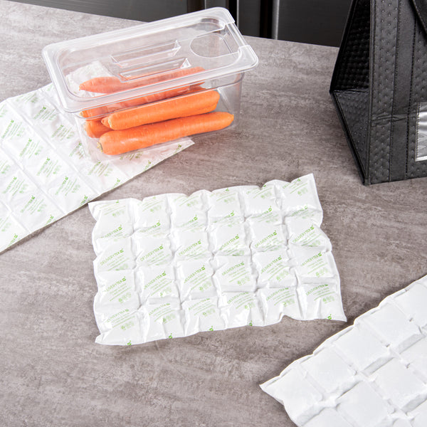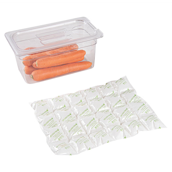 Deliver your cakes fresh using our Delivery Tek Plastic Shipping Ice Packs. Made from durable plastic, these sheets of ice packs do not tear or get damaged during transit. Immerse these ice packs for coolers in water and dry them before placing them in the freezer. Use these sheets of cool packs as a whole or as individual cells. The fabric side of these freezer packs allows faster absorption. For a smooth delivery process, these sheets of dry ice packs are leakproof. These cold packs come in thin sheets to enable easy storage in your kitchen or catering vans. Measuring 15.25 inches in length by 11.5 inches in width, each ice pack sheet contains 24 cells of dry ice packs. Sold in a 100 count box.