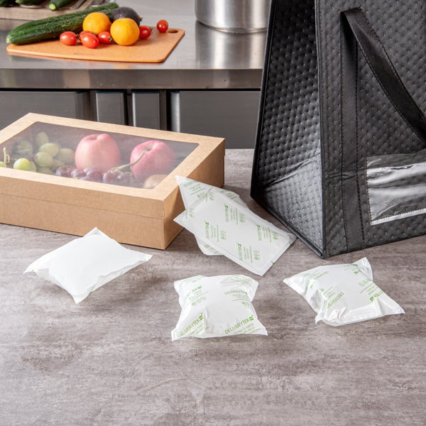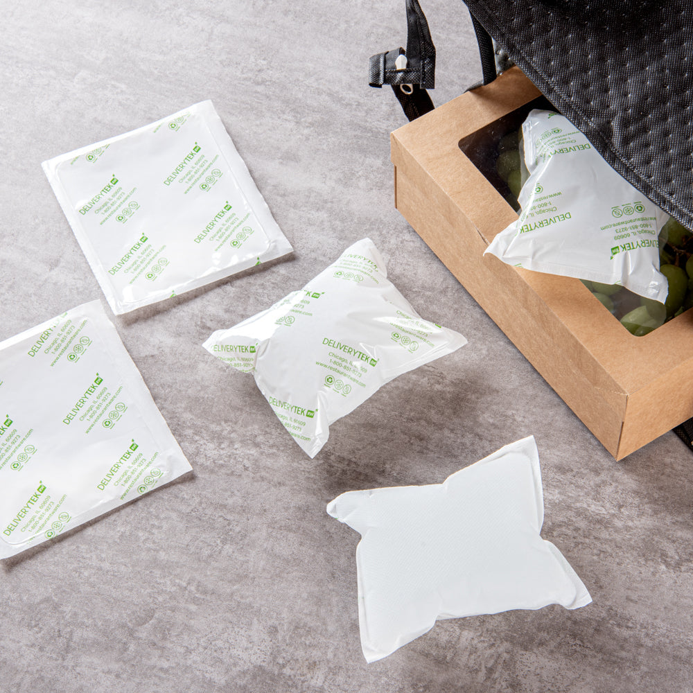 Keep your frozen items fresh even during blackouts using our Delivery Tek Plastic Shipping Ice Packs. These durable, cool packs are made of premium plastic for longevity. With a fast-drying surface, easily soak these in water and air-dry them before placing them in the freezer. These dry ice packs are leakproof, allowing you to deliver frozen items without any liquid mess. The non-woven fabric side of these ice packs for coolers lets them swell quickly when kept in water. Conveniently store these reusable ice packs in your kitchen without taking up much space, as they come in the form of thin sheets. These cold packs measure 6.25 inches by 5 inches in width. Shipped in a 100 count box.