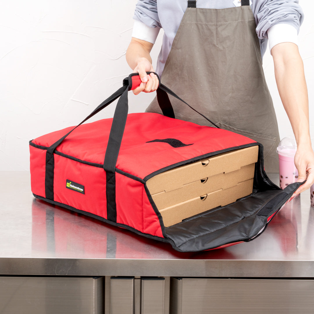 RED PIZZA BAG - HOLDS 2-20" OR 3-18", INSULATED