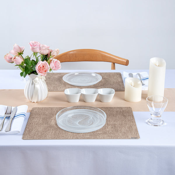 RECTANGLE BEIGE VINYL LINEN-FEEL PLACEMAT