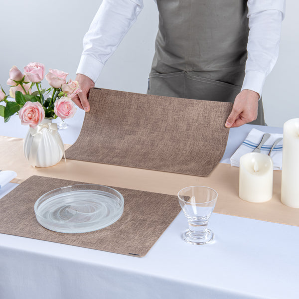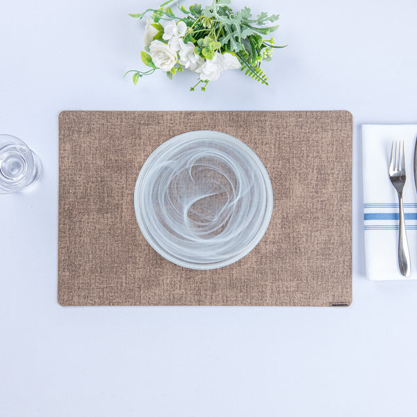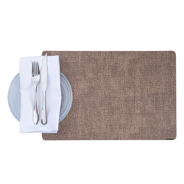 RECTANGLE BROWN VINYL LINEN-FEEL PLACEMAT