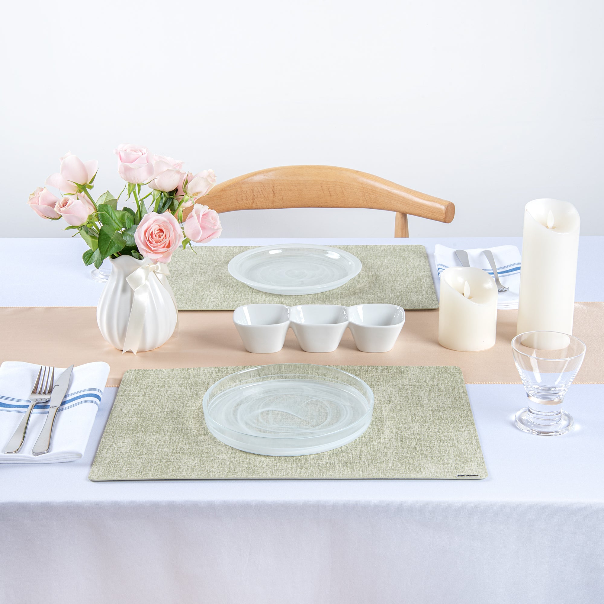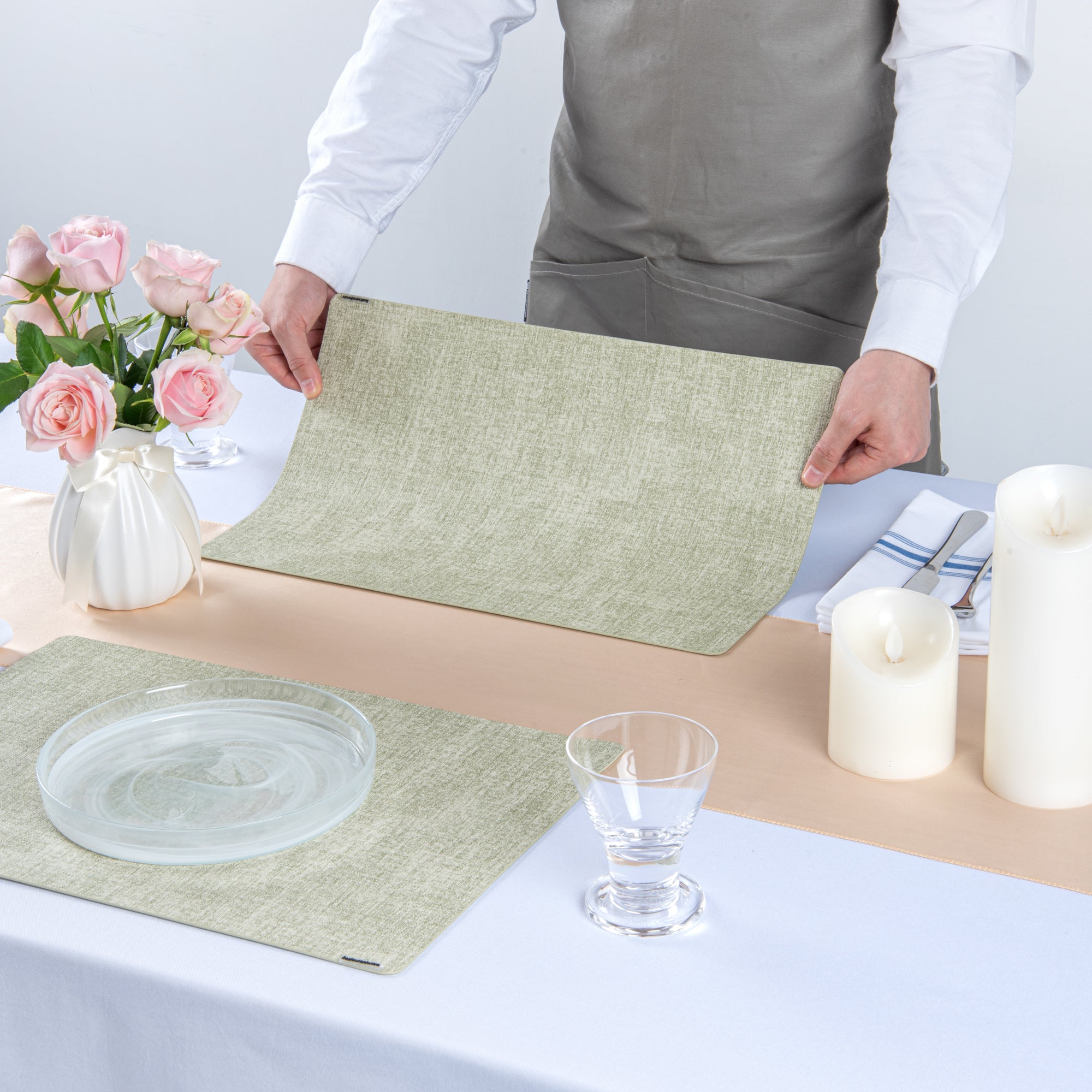RECTANGLE GREEN VINYL LINEN-FEEL PLACEMAT