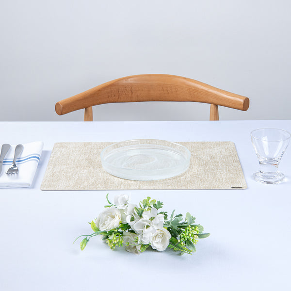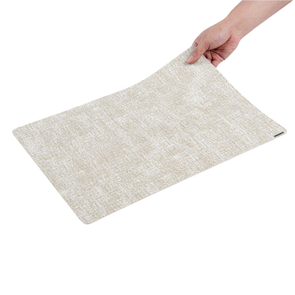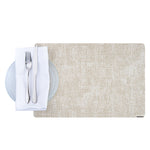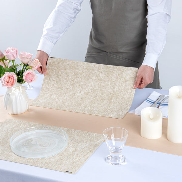 Enhance your dining experience with sophisticated table settings. The Denim Mesh Linen-Feel Vinyl Placemat offers a luxurious linen-feel design that elevates tablescapes, making it ideal for formal dining events. Measuring 17.7 inches in length and 11.8 inches in width, this vinyl placemat provides ample space for any dinnerware arrangement. Its edge wrapping process is specifically crafted to prevent fraying, ensuring long-term use and maintaining its shape over time. Constructed from premium vinyl, this wipeable placemat allows for easy cleaning with just a damp cloth, enabling quick turnaround times between services. Designed to be both cold and hot food friendly, as well as greaseproof, these placemats meet the rigorous demands of busy foodservice settings. Choose these recyclable placemats to combine elegance with practicality in your restaurant. Each order includes 6 Denim Mesh Linen-Feel Vinyl Placemats.