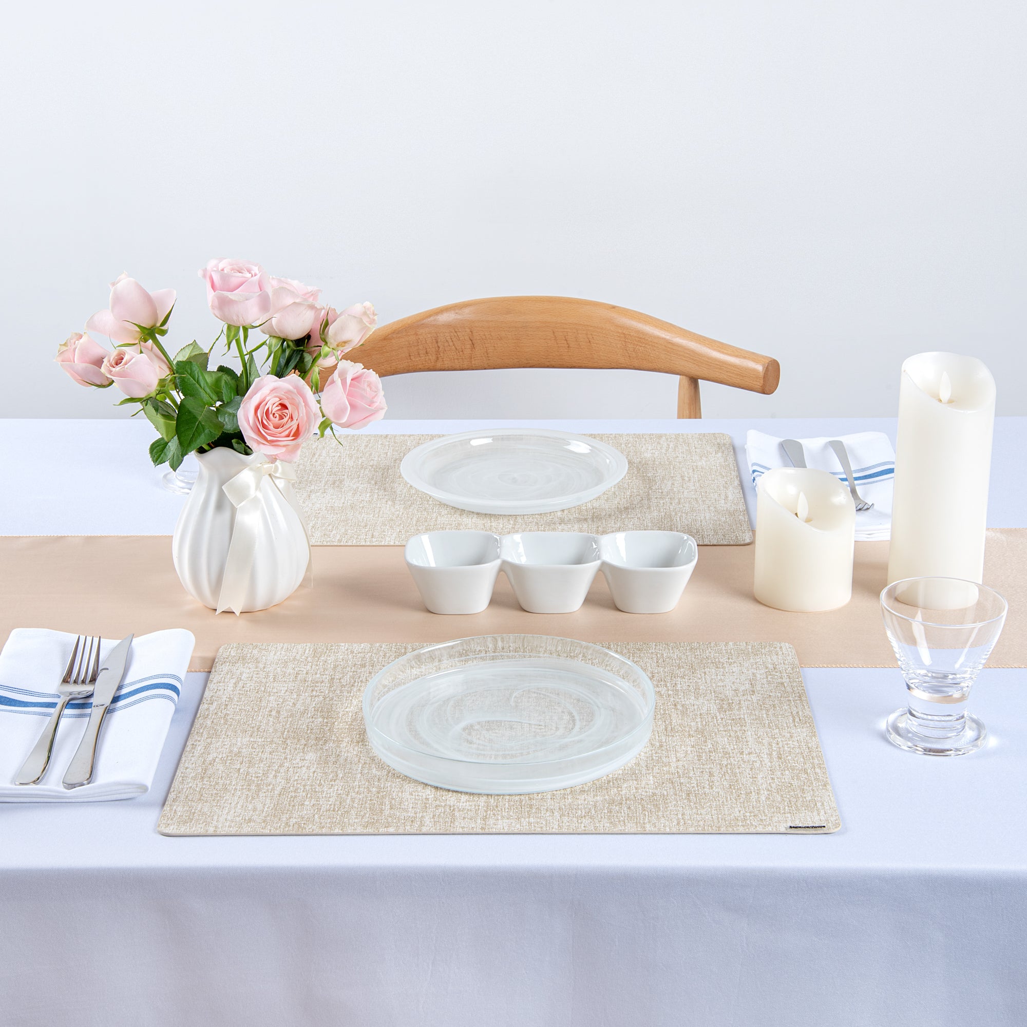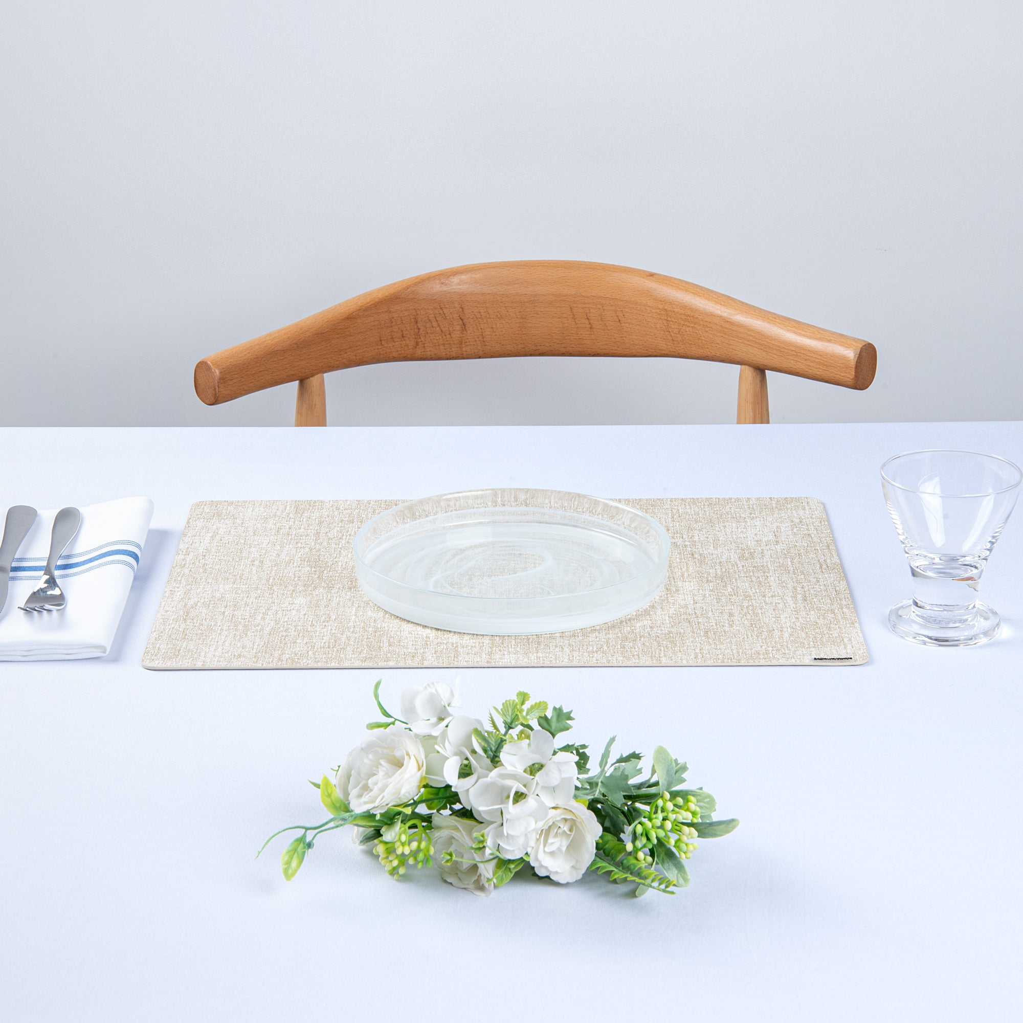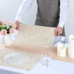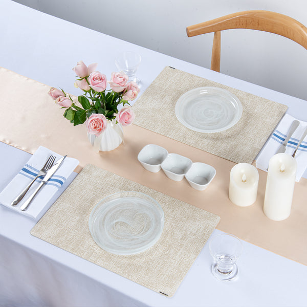 - Linen-feel design adds sophistication to tablescapes