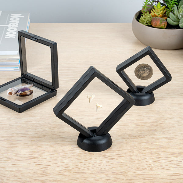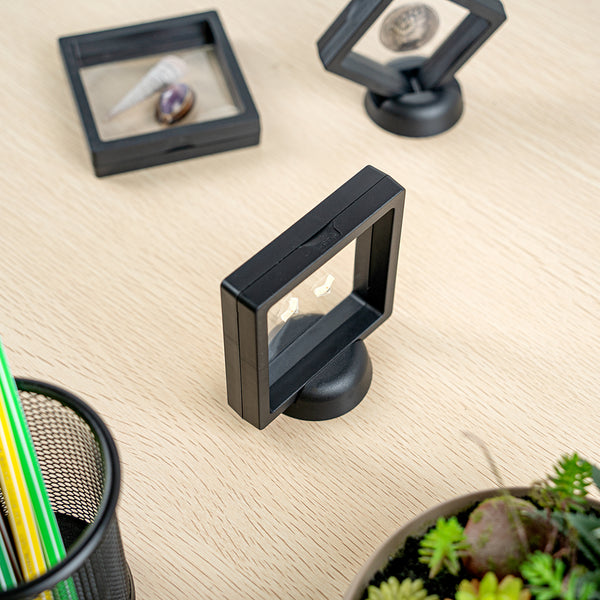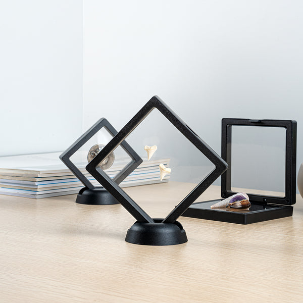 SQUARE BLACK PLASTIC 3D FLOATING DISPLAY CASE - 3 1/2" X 3 1/2" X 3/4"