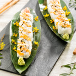 Create an exotic-inspired presentation for your dishes with our Dojo Green Fresh Bamboo Leaves. These vibrant bamboo leaves for sushi rolls add flair to your food presentation. Packaged in an innovative vacuum-sealed bag, these fresh bamboo leaves are able to expertly maintain their freshness until you're ready to use them. After opening a vacuum-sealed pack, we recommend refrigerating these food-safe bamboo leaves in water and using them within 2-3 days. Measuring around 11.75 inches in length by 3.5 inches in width, these fresh bamboo leaves are ideal for plating appetizers, tapas, entrees, and desserts. Shipped in a 100 count box. These bamboo leaves are not intended for consumption.