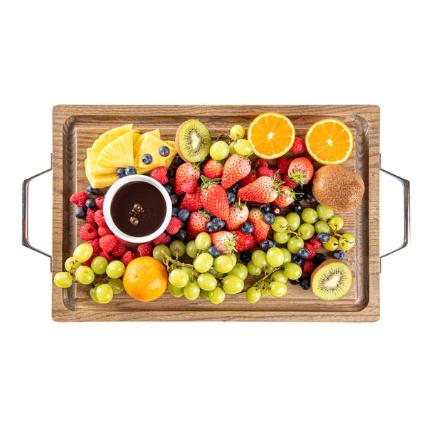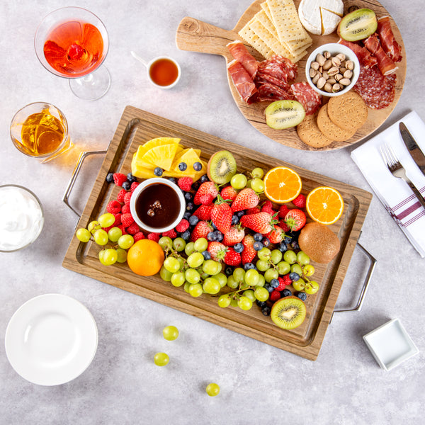 CAMPAGNA WOOD SMALL SERVING AND CUTTING BOARD - CHROME HARDWARE