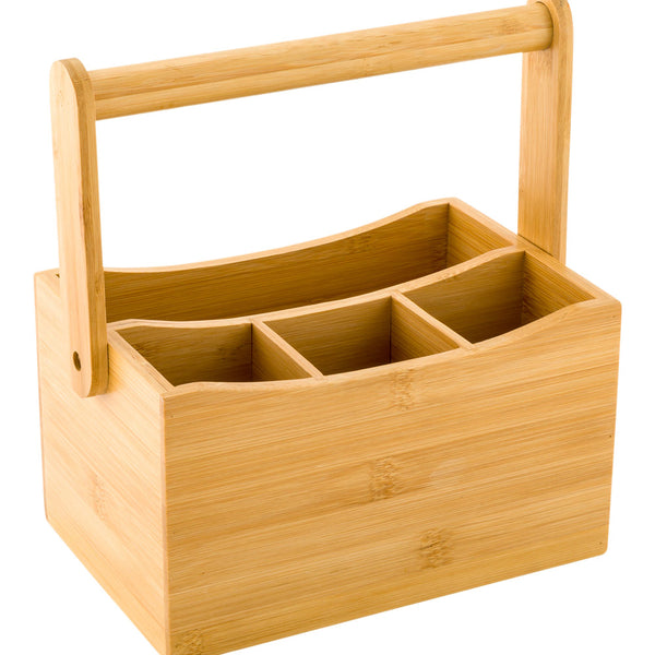 NATURAL BAMBOO FLATWARE HOLDER - WITH HANDLE