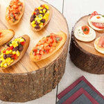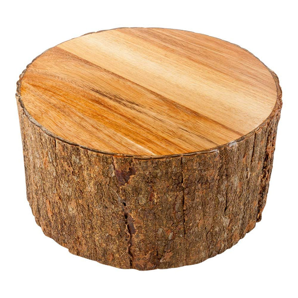 Show off your appetizer and dessert spreads using our Eco Display Round Natural Acacia Large Riser. This food display riser is made from premium acacia wood and is durable to withstand heavy-duty use at your catering events or foodservice establishment for serving various hot or cold food items. To enhance its natural wood tones and graining, this buffet table riser has a varnished finish to maintain its unique appearance. Crafted with an all-natural bark exterior, this wooden display tray adds an earthy, rustic touch to tables and buffets. Designed to look just like a tree stump, this food display riser has a flat surface to neatly fit large cakes and pies or savory treat arrangements. Featuring a hollowed-out bottom, this lightweight food display riser provides stability on all surfaces to prevent messy spills. Sold in a 1 count box.