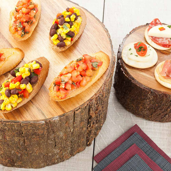 - Natural bark surface bring rustic flair to tablescapes and place settings