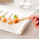 Make your appetizer or dessert presentation mess-free and portable using our Rounded Square Natural Bamboo Tasting Spoons. These ice cream sample spoons are made of high-quality bamboo and will not snap easily. Made from premium bamboo, these gelato spoons are odorless and don't alter the taste or smell of foods. The bamboo tasting spoons are suitable for both hot and cold foods, making them perfect to enjoy all types of samples. With a flat design, these gelato spoons are comfortable to hold while tasting. These disposable tasting spoons come with an indented rounded square shape for easy scooping. These sample spoons are conveniently disposable, making the cleaning process fast and simple. Measuring 3.5 inches in length, these ice cream sample spoons fit inside most dessert takeaway boxes. Shipped in a 100 count box.