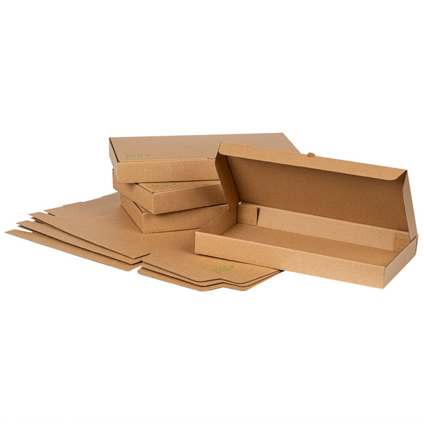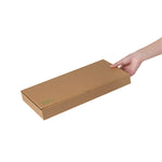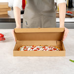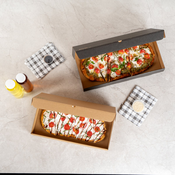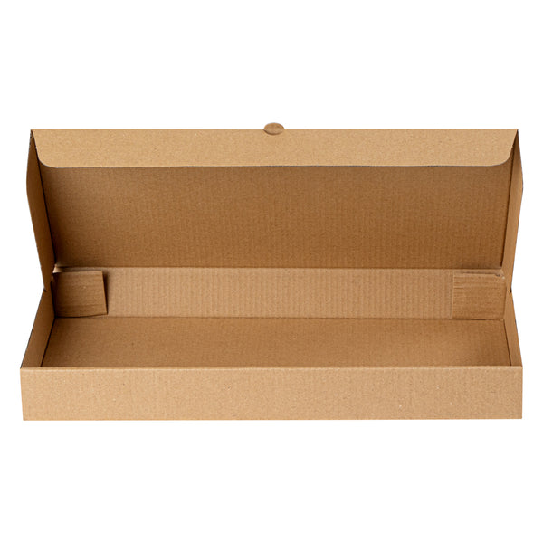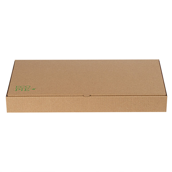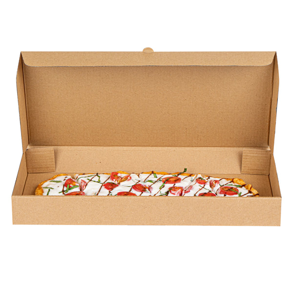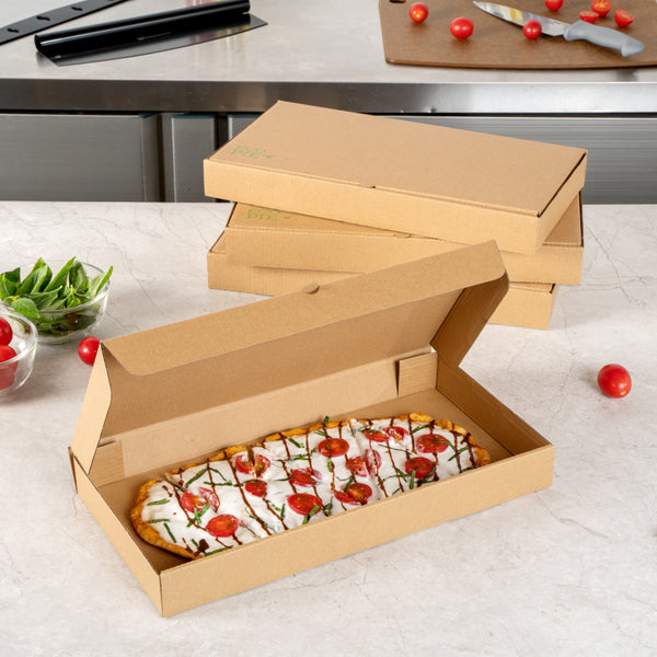 Protect your pizzas and flatbreads with eco-friendly, durable packaging. The Eco Pie Tab-Lock Rectangular Pizza Box features sturdy corrugated cardboard construction that prevents damage during transit, ensuring each pizza arrives in perfect condition. Its E-flute design maintains the box’s shape and protects contents, making it a dependable rectangular pizza box for takeout and delivery. The 14 inches by 7 inches by 1.5 inches dimensions provide ample space for flatbreads, enhancing your menu versatility. With a kraft paper design, this kraft pizza box offers a rustic appeal that resonates with eco-conscious customers. The tab-lock slot ensures secure delivery, making it the ideal pizza delivery box for busy pizzerias and restaurants. Stackable for efficient storage, these boxes are perfect for maximizing space in bustling kitchens. Enhance your foodservice packaging with this reliable solution. Each order includes 50 Eco Pie Tab-Lock Rectangular Pizza Boxes.