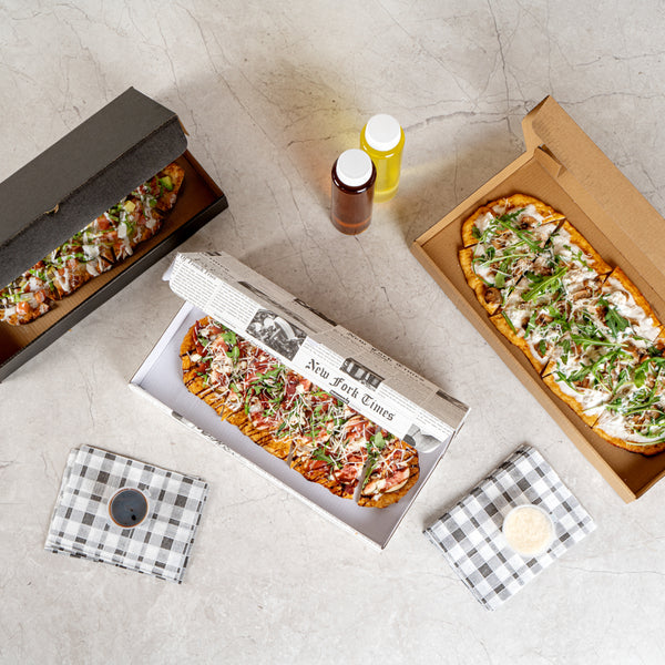 - Corrugated cardboard prevents flatbreads from getting damaged