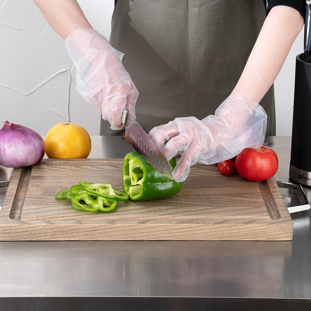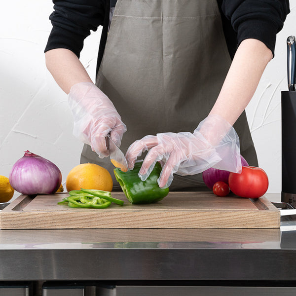 CLEAR PLASTIC MEDIUM COMPOSTABLE GLOVES - POWDER-FREE