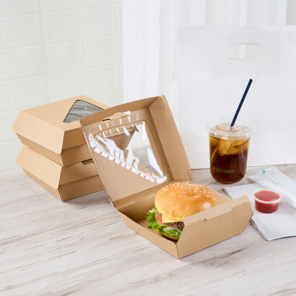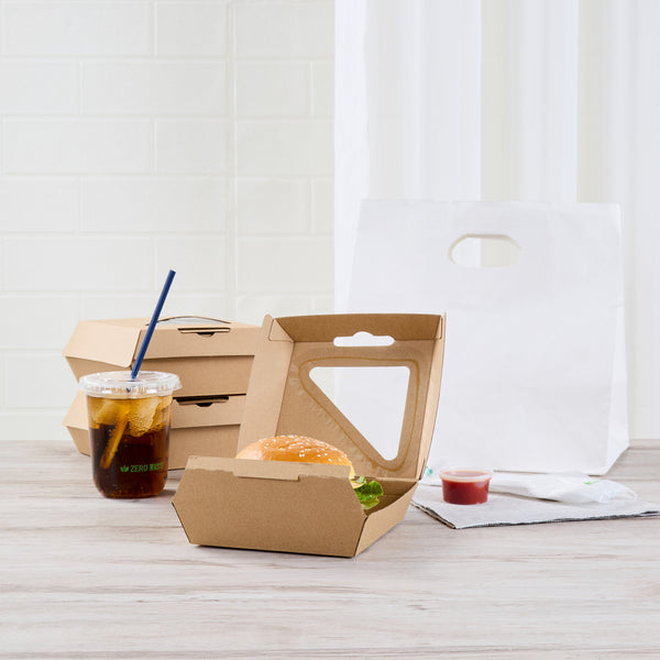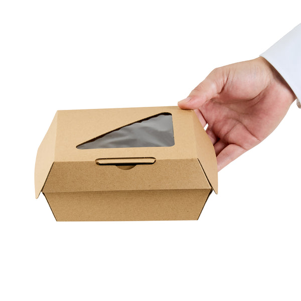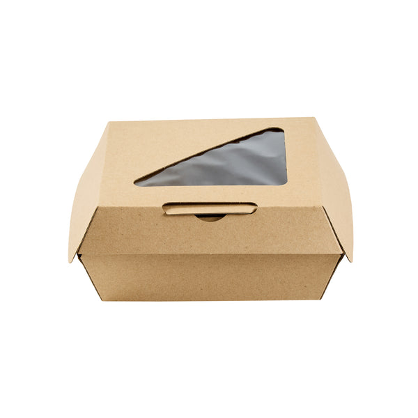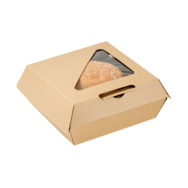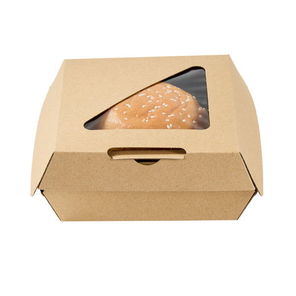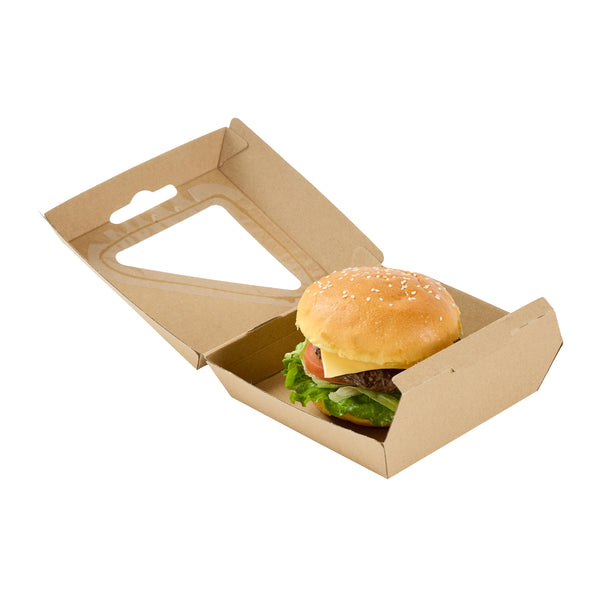 KRAFT PAPER CORRUGATED BURGER BOX - WITH PLA WINDOW